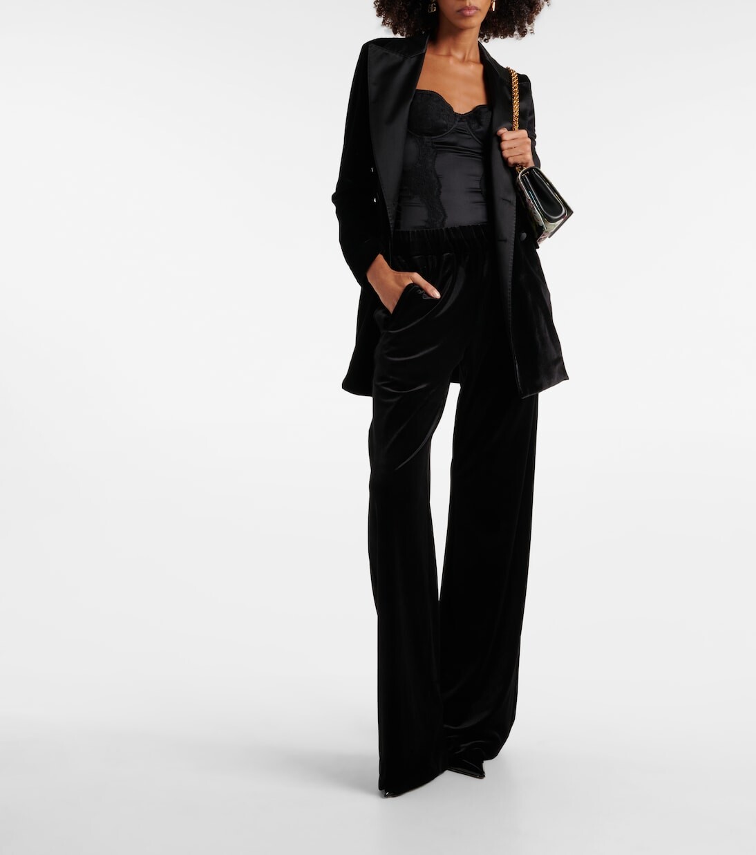 Широкие бархатные брюки с высокой посадкой Dolce&Gabbana, черный
