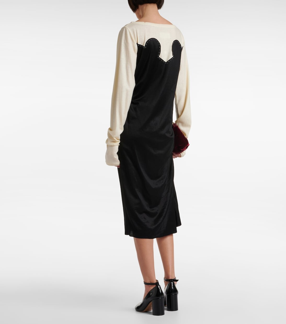 Платье миди из джерси со сборками Maison Margiela, черный