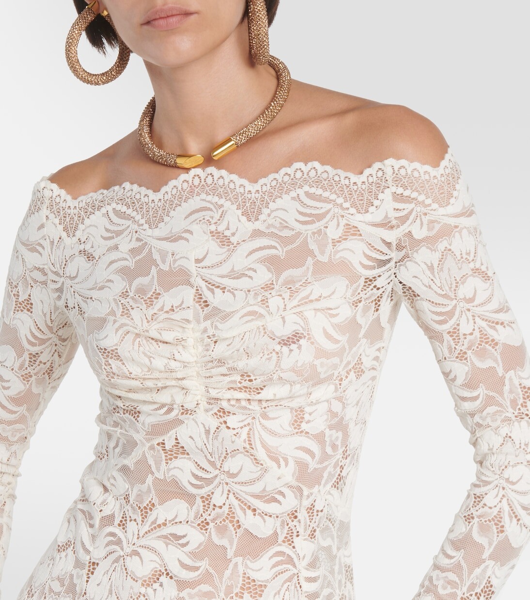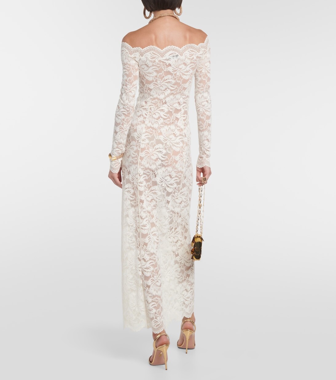 Кружевное платье макси с открытыми плечами Rabanne, белый 90 105₽