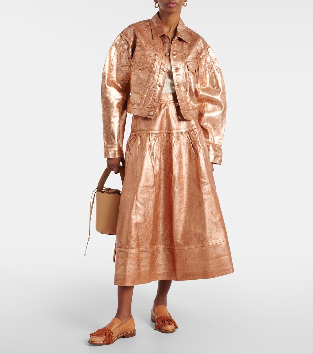 Джинсовая юбка миди astrid с фольгированным эффектом Ulla Johnson, металлический