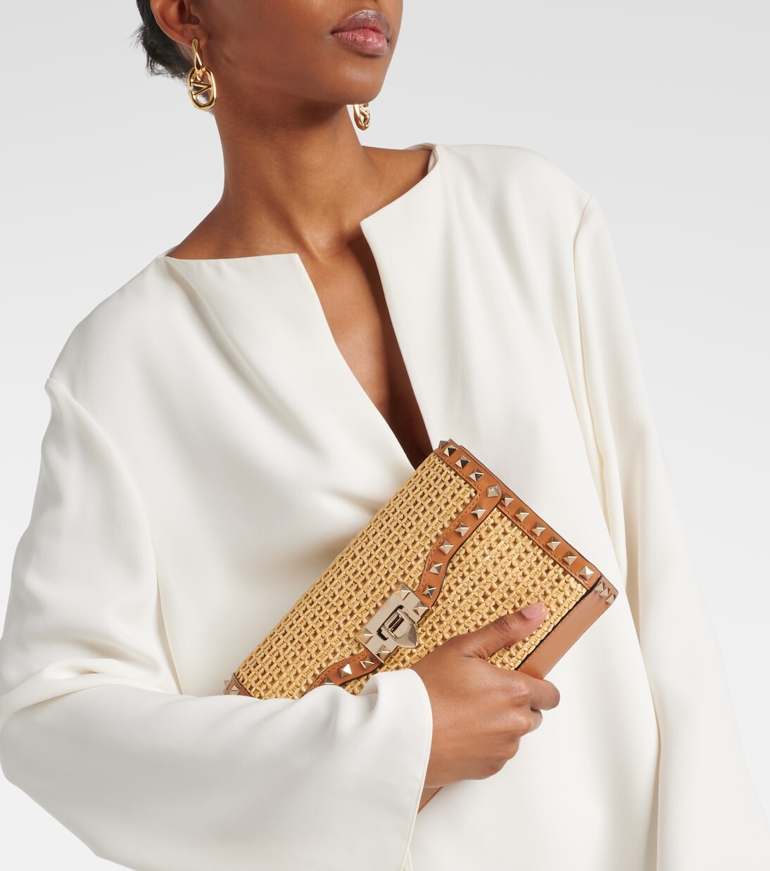 Маленькая сумка через плечо rockstud из рафии Valentino Garavani, бежевый 177 977₽