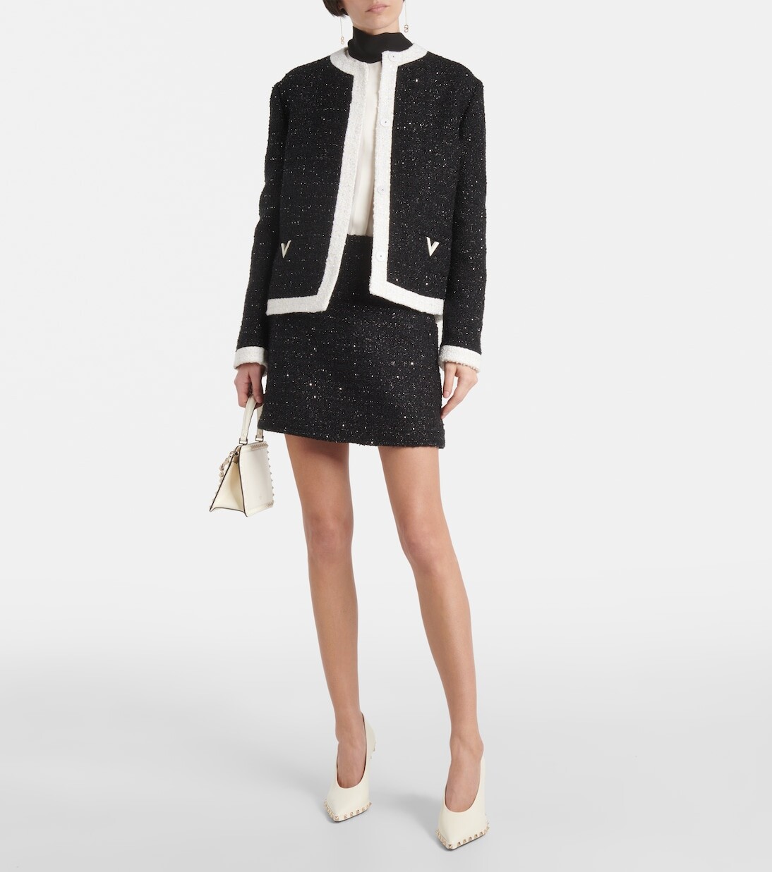Твидовый пиджак из ламе Valentino, черный