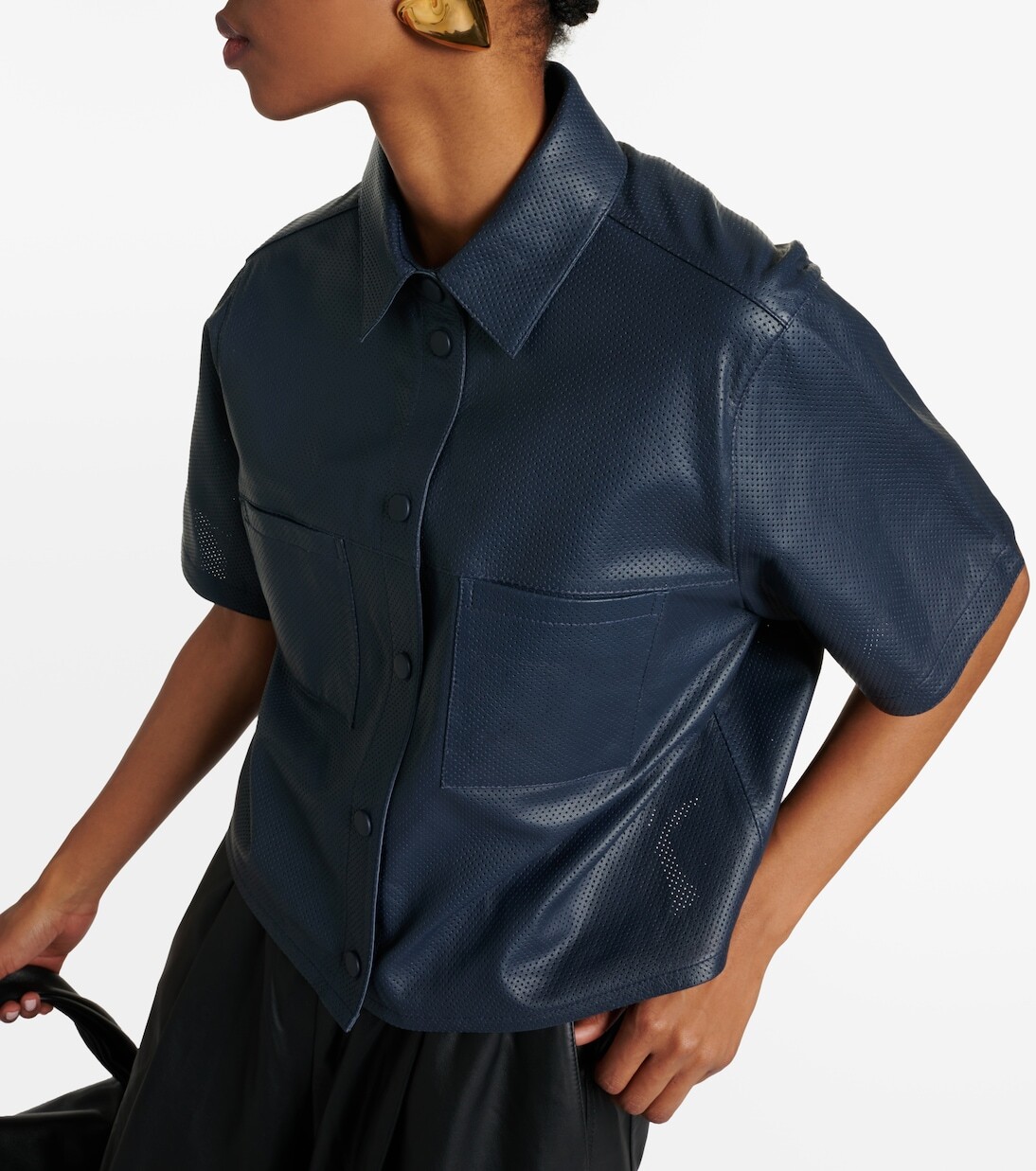 Кожаная рубашка оверсайз Yves Salomon, черный