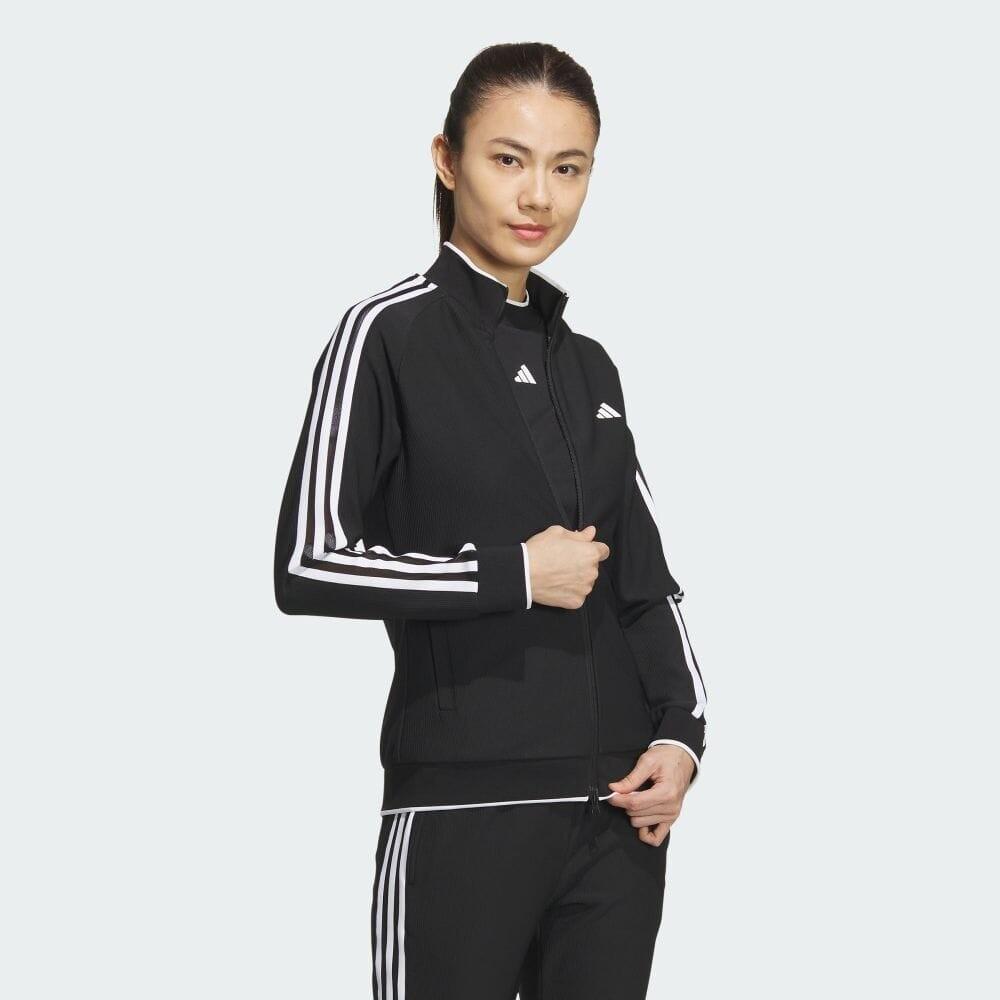 В прохладные дни отправляясь на трассу, не жертвуйте комфортом. Куртка Adidas Three Stripes Track Dry для гольфа не пропускает холодный воздух, а система AEROREADY быстро впитывает влагу, обеспечивая сухость и комфорт, помогая сосредоточиться на следующем ударе.