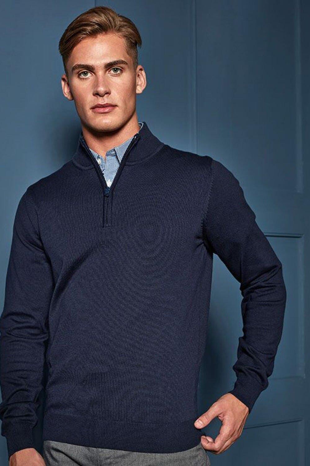 1 4 вязаный свитер с воротником на молнии Premier, темно-синий