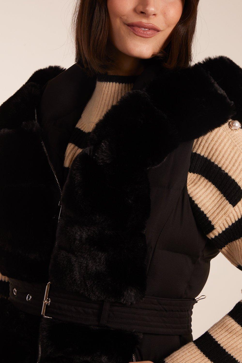 Согрейтесь в этом жилете с деталями из искусственного меха.