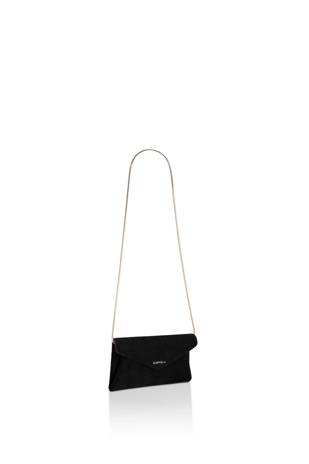 Сумка-клатч Megan Envelope выполнена из черной микрозамши с золотистым логотипом Carvela на переднем клапане. Размеры: 14 см (В), 24 см (Д), 1 см (Г). Длина ремешка: 109см. Высота ремешка: 50 см.