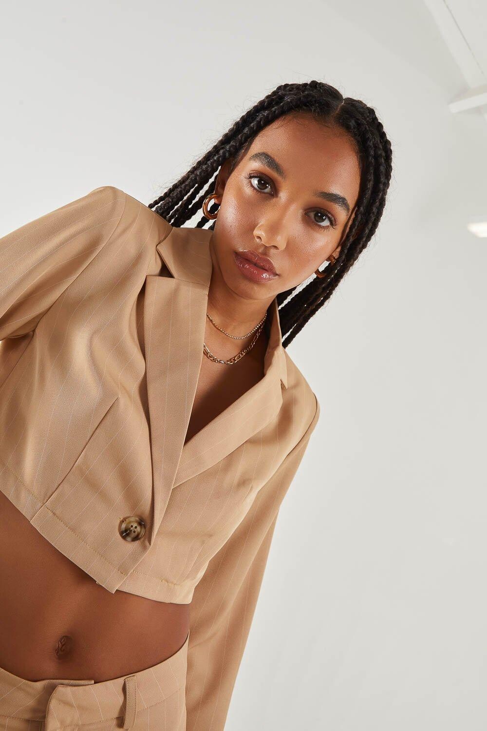 Укороченный пиджак в тонкую полоску Pink Vanilla, бежевый
