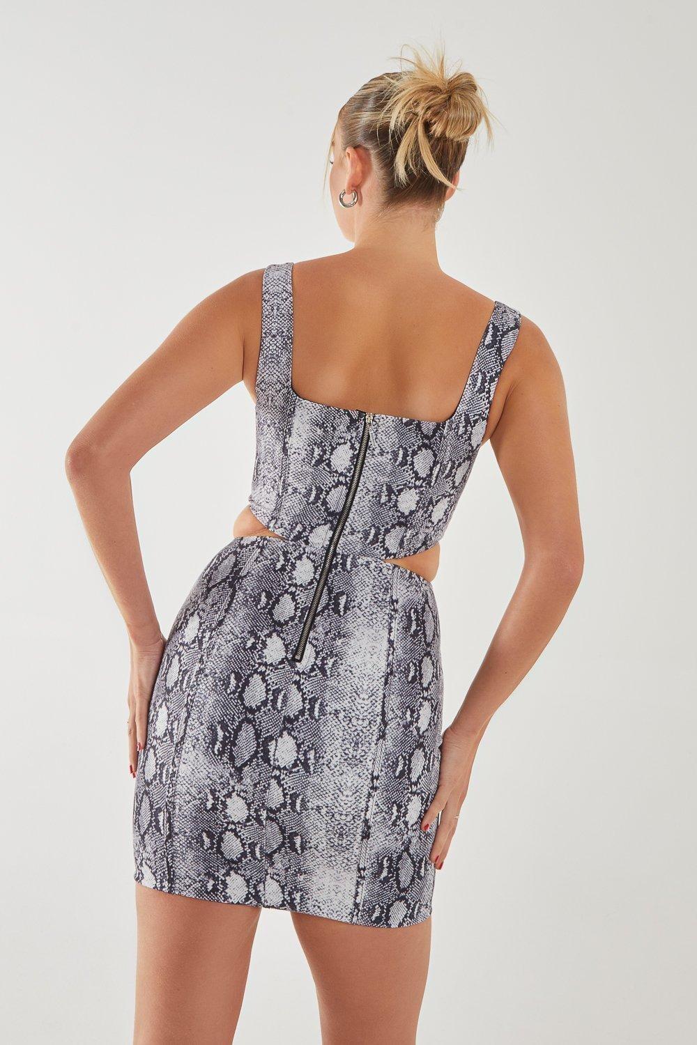 Наше мини-платье Cut Out имеет скульптурные вырезы на талии. С этим сексуальным животным принтом все взгляды будут прикованы к вам!
