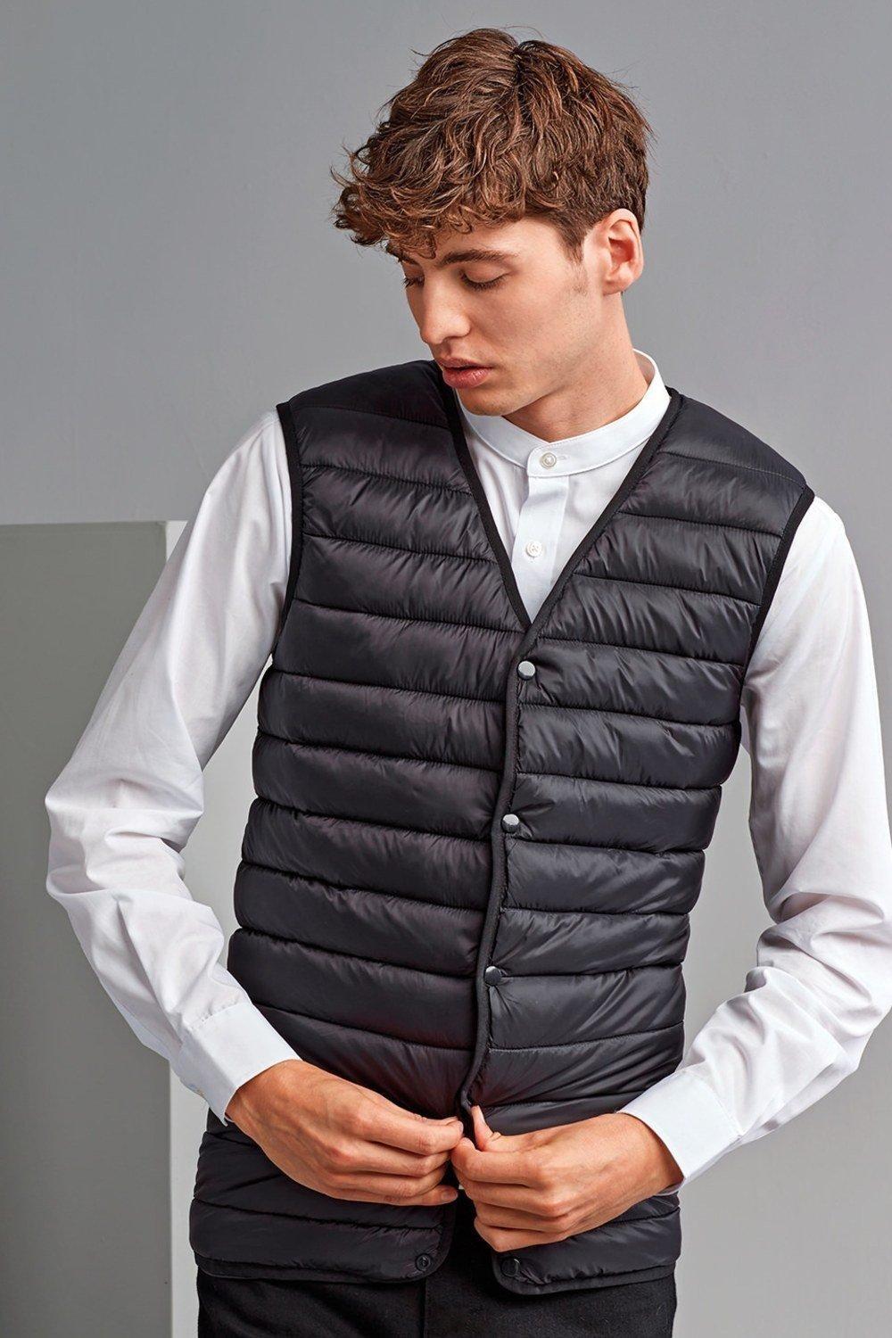 Внешние материалы: 100% нейлон. Материал подкладки: 100% нейлон. Материал наполнителя: 100% полиэстер. 165 г/м2. Дизайн: Стеганый. Мягкий, без тегов. Тип рукава: без рукавов. Манжета: эластичная бейка. Вырез: V-образный вырез. Карманы: 2 внутренних кармана. Крепление: Шпилька. Подол: эластичная бейка. Соответствует стандарту безопасности: Amfori, BSCI.