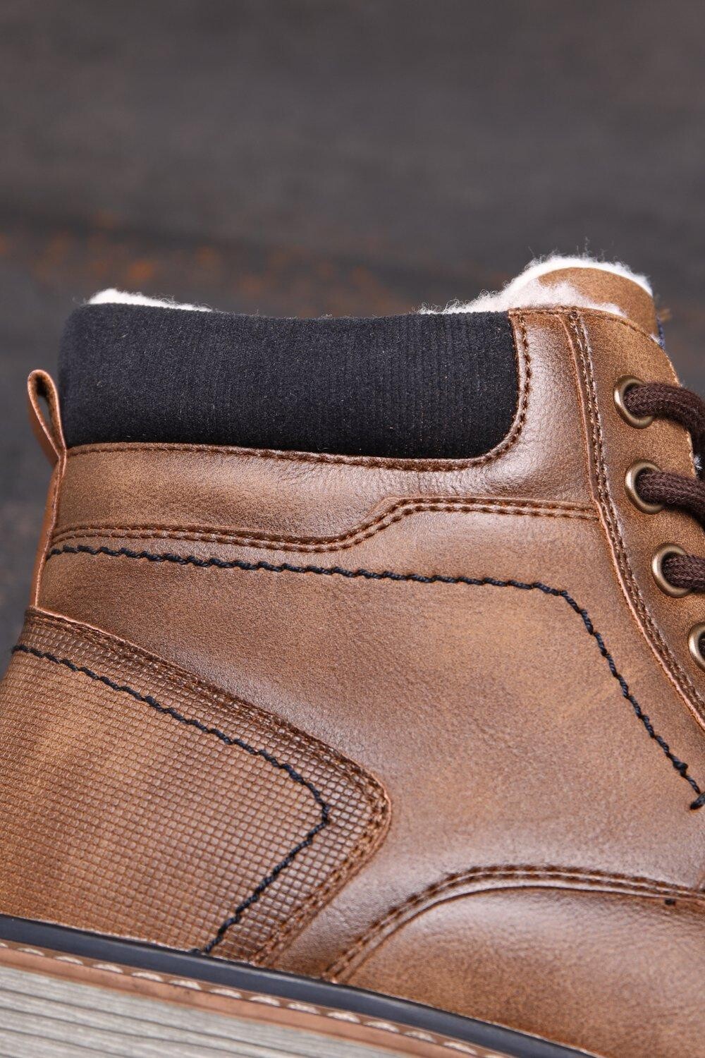 Подробная информация о продукте Материал подошвы Резиновый голенищ Высота щиколотки Внешний материал Искусственная кожа Внутренний материал Мех Внутренняя подкладка Застежка на шнуровке Об этом изделии Внутренняя часть на меховой подкладке сохраняет тепло и комфорт зимой Застежка на шнуровке позволяет адаптировать обувь в соответствии с вашим стилем ширина вашей стопы Стильный дизайн