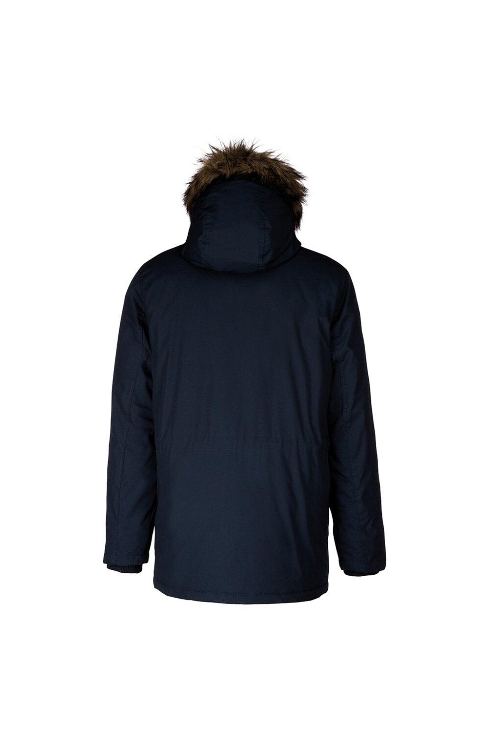 Материал: 65% полиэстер, 35% хлопковое полотно с полиуретановым покрытием. Подкладка и подкладка из полиэстера. Мягкий капюшон на контрастной подкладке со съемной отделкой из искусственного меха. Молния по всей длине с внутренней защитой и ветрозащитной планкой с заклепками. Два нагрудных кармана с застежкой-кнопкой. Внутренний карман для разрыва. Регулируемая талия на шнурке. Два передних кармана с застежкой-кнопкой. Ребристые манжеты. Доступ на молнии для украшения. Подходящий размер груди: (S): 34/36, (M): 38, (L): 40, (XL): 42, (XXL): 44/46 дюймов.