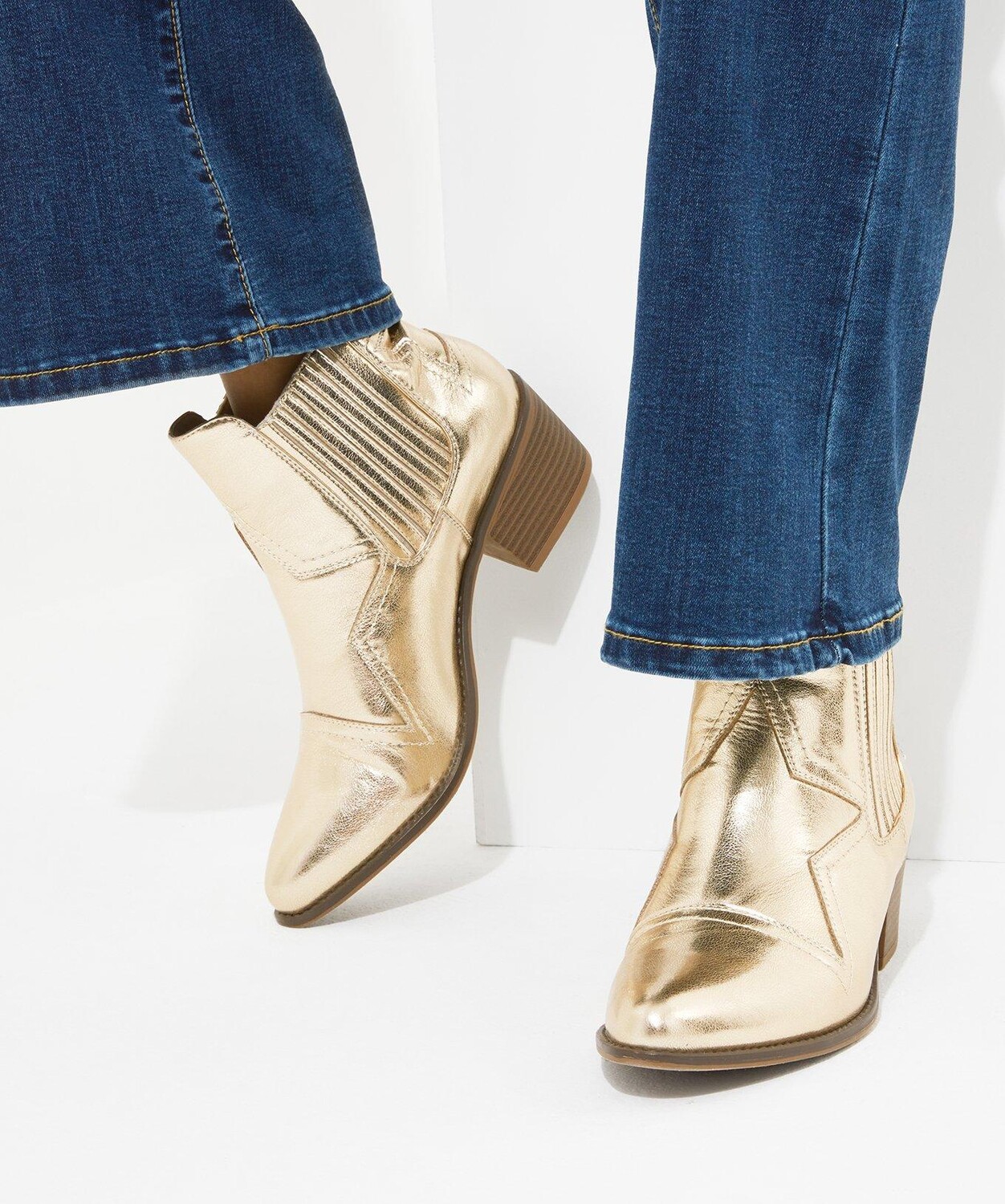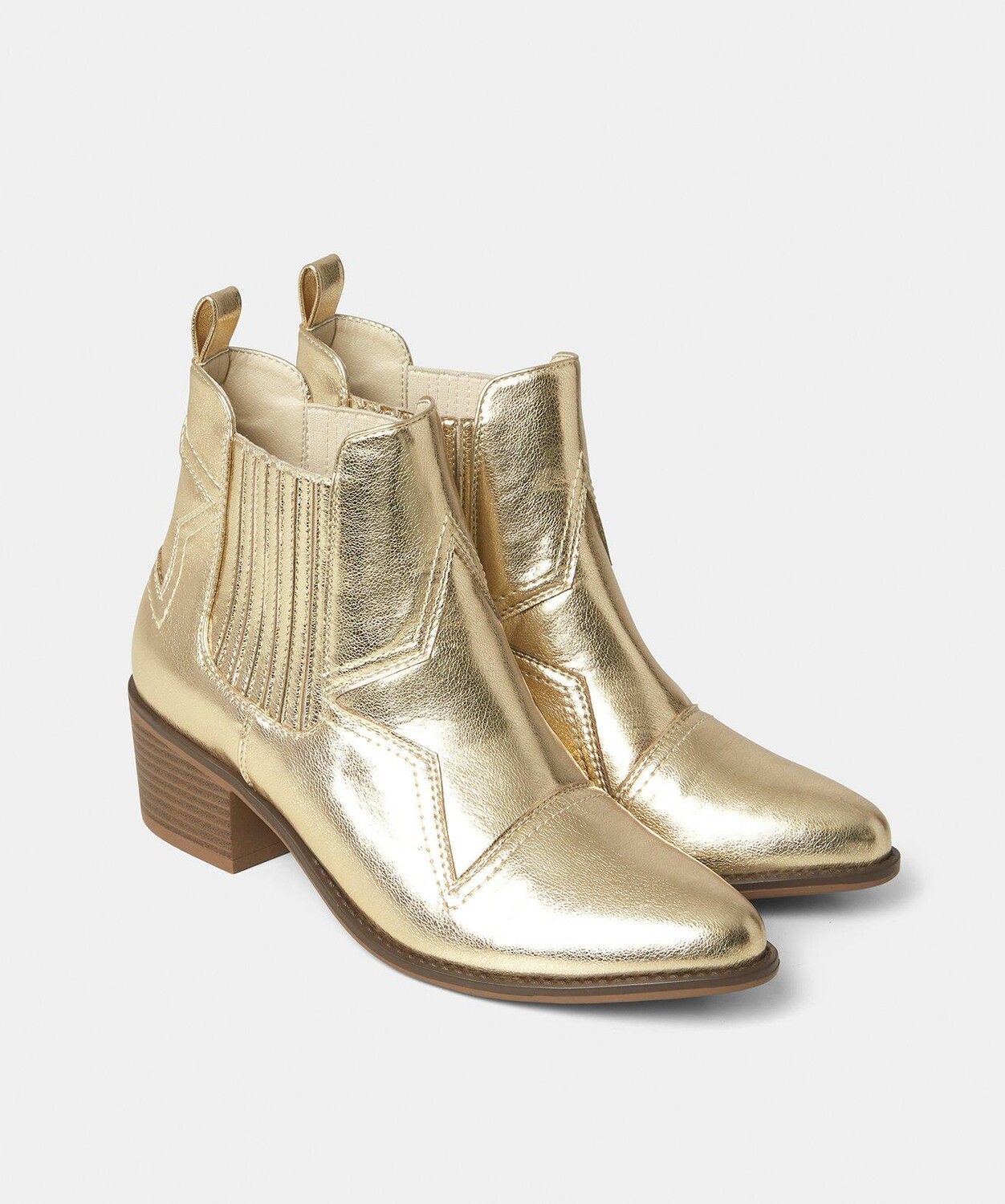 Эти эффектные ботинки с эффектом металлик сочетают западный стиль и современный дизайн. Их легко носить с обувью на низком каблуке и эластичной посадкой. Они обязательно привлекут вас внимание благодаря уникальной звездной детали, которая раскроет вашу внутреннюю рок-девочку. Присоединяйтесь к металлическому тренду и наденьте эти ботинки вверх или вниз с вашими любимыми платьями, джинсами или юбками.