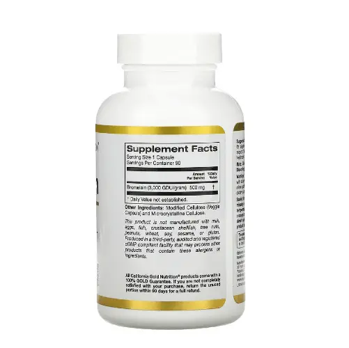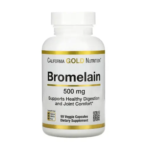 Бромелайн — это природный протеолитический фермент, расщепляющий белки, который получают из стеблей ананаса. Помогает поддерживать здоровое пищеварение, а также улучшает суставы.Бромелайн известен своим противовоспалительным действием, которое поможет улучшить состояние суставов и мышц. Противовоспалительные свойства помогут поддерживать здоровье дыхательных путей и уменьшить воспаление и отек носовых пазух.