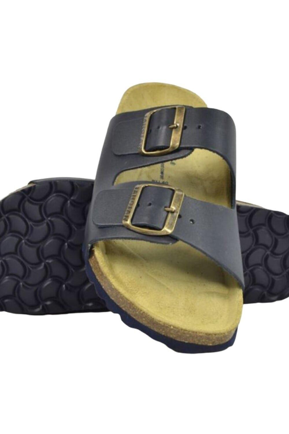 Верх: кожа наппа. Подошва: ЭВА. Стелька Саносан. Плоский. Дизайн: логотип, однотонный. Застежка: регулируемые ремни, пряжка.