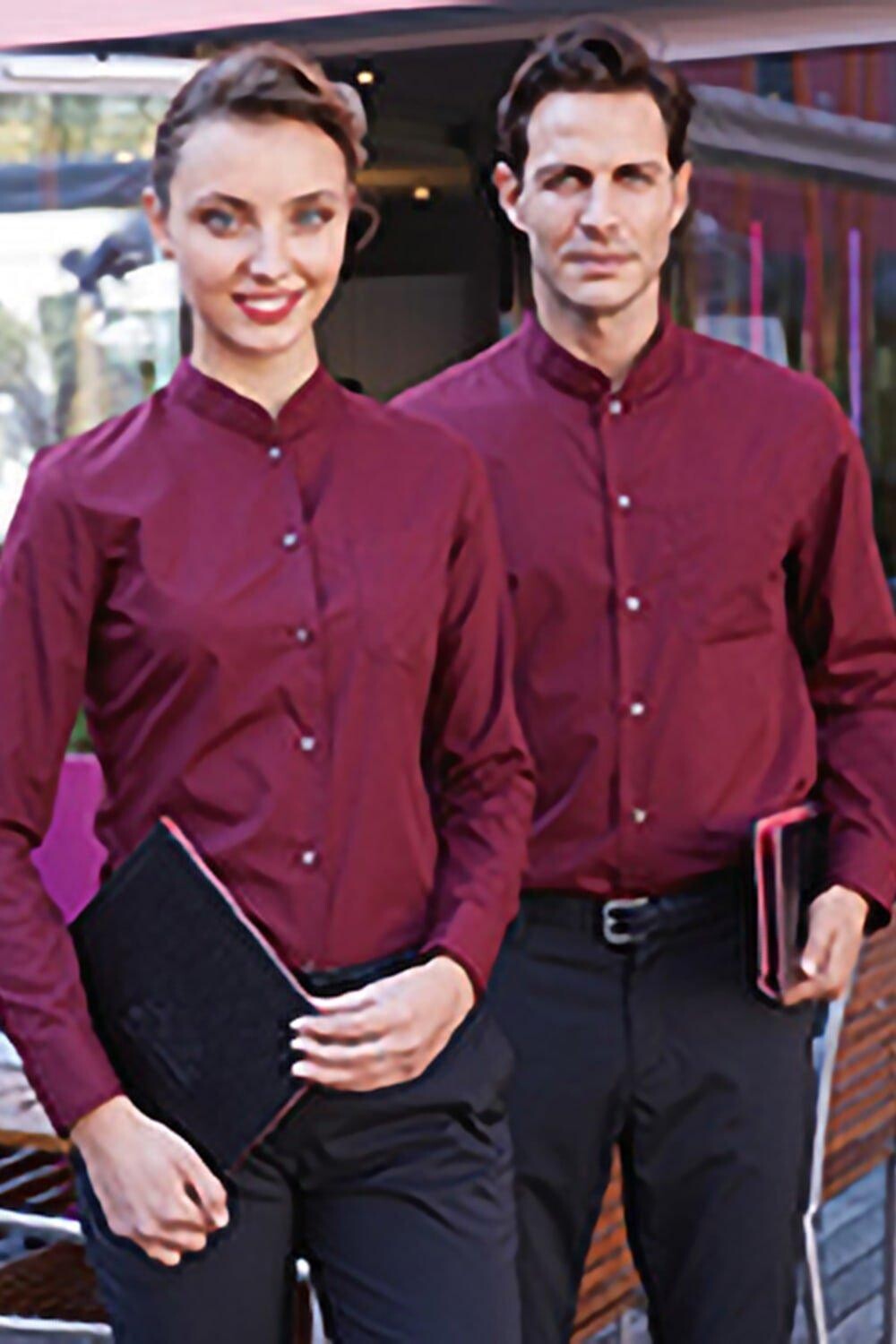Ткань, легкая в уходе. Воротник в стиле мандарин. Кнопки соответствующего цвета. Левый нагрудный карман. Регулируемые манжеты. Задняя кокетка. Фигурный подол. 65% полиэстер, 35% хлопковый поплин. Размер/обхват груди (по размеру): S-36, M-38, L-40, XL-42, XXL-44/46.