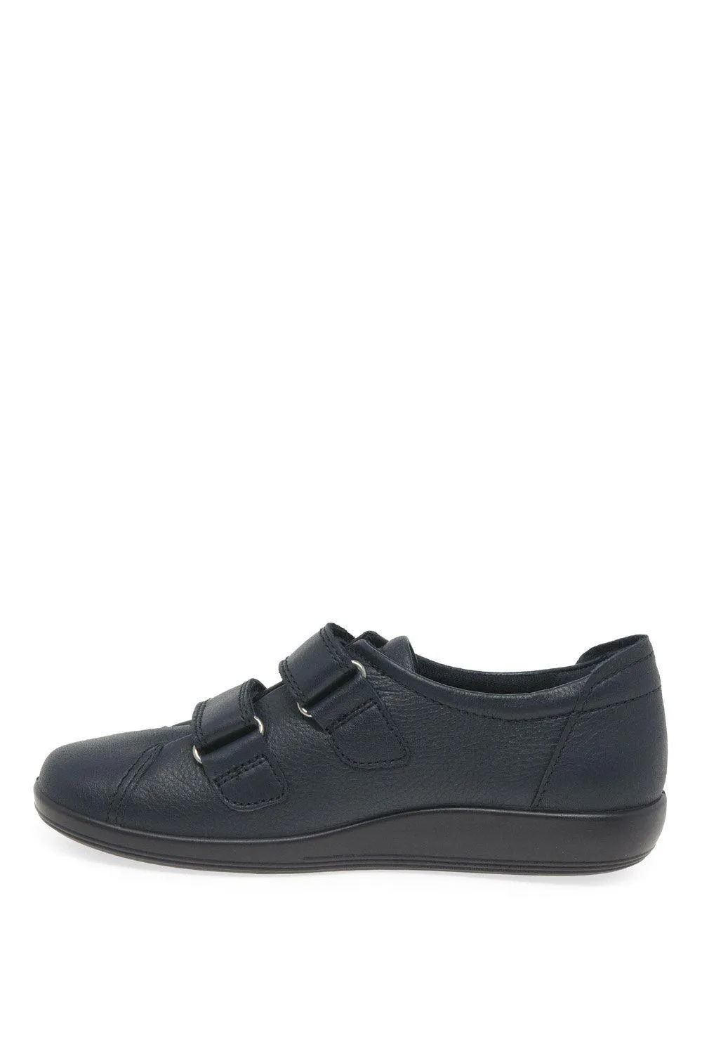 Женские туфли Ecco Soft 2 Strap — классическая повседневная пара для повседневного ношения. Верх из мягкой и эластичной кожи без подкладки позволяет ногам дышать естественно. Подошва представляет собой поддерживающую низкую танкетку с каблуком высотой 2 см, обеспечивающую превосходную амортизацию и комфорт при ходьбе. Широкую посадку можно регулировать с помощью двойной застежки-липучки, а кожаные стельки обеспечивают поддержку свода стопы.