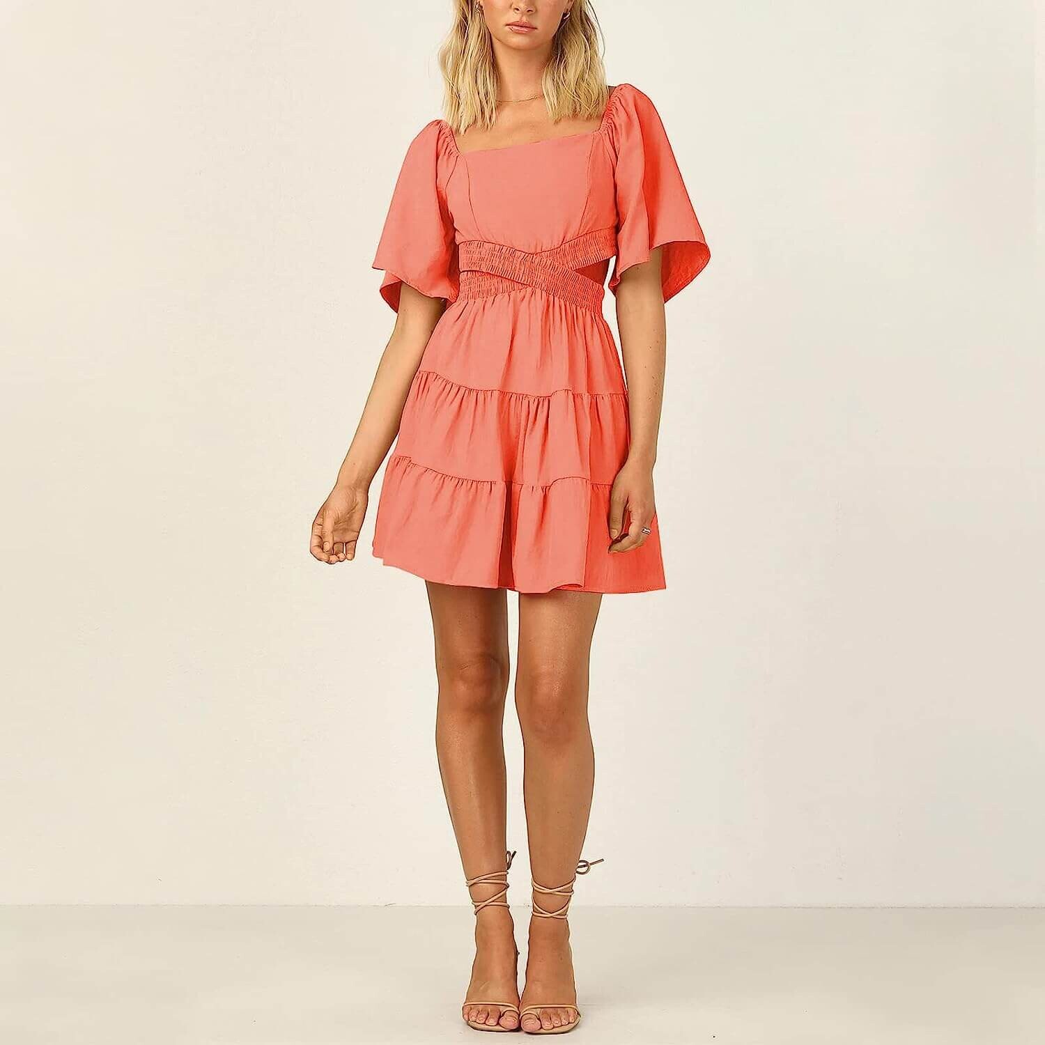 Повседневное мини-платье с короткими рукавами и вырезом сзади.