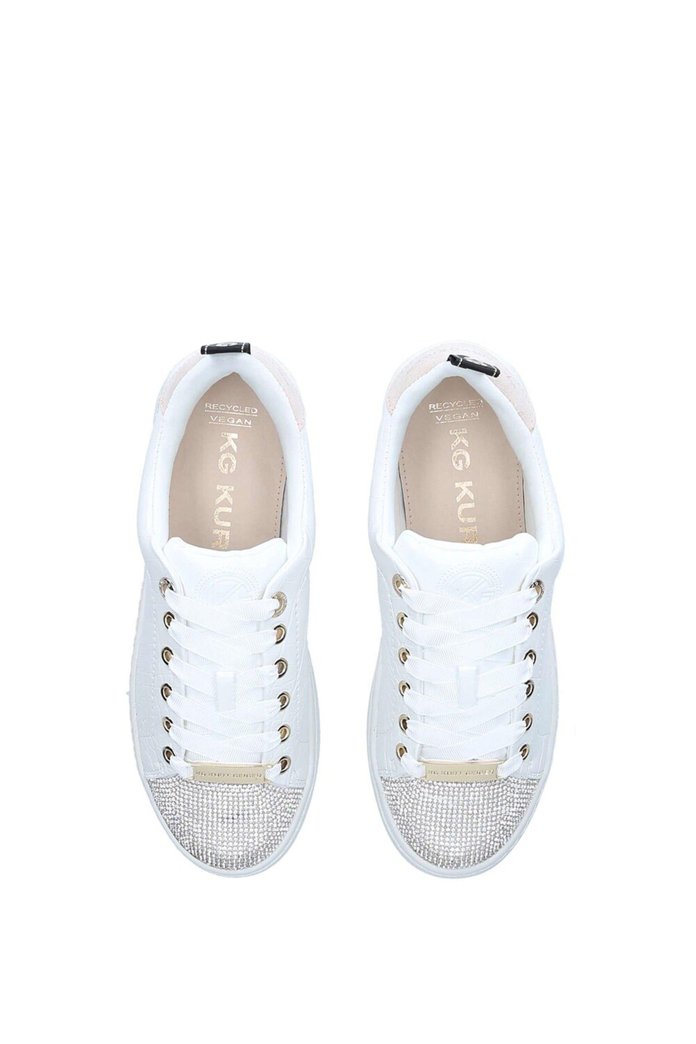 KG Kurt Geiger's Liza2 — кроссовки с низким верхом для повседневной жизни в новом сезоне. Текстурированные белые кроссовки с белыми шнурками, белой подошвой и блестящими золотистыми люверсами. Блеск серебра и последние штрихи можно найти на носке для роскошного завершения. идеальный способ закончить джинсы до щиколотки. Материалы, используемые в нашем веганском ассортименте, были зарегистрированы Веганским обществом, что подтверждает, что при производстве не используются продукты животного происхождения. Материал верха: 41 % переработанный поливинил после потребительской переработки + 10 % поливинилбутираль, переработанный до потребителя + 2 % другие материалы + 22 % полиуретан Thermoplatc + 25 % натуральный полиэстер