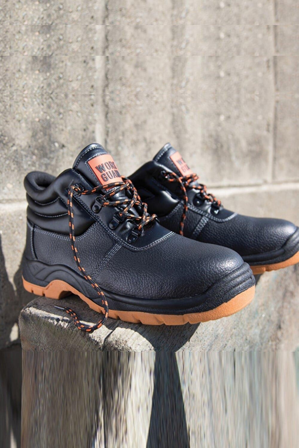 Стальной носок по стандарту EN ISO 20345 (200 Джоулей). Стальная межподошва. Водонепроницаемый и маслостойкий. Сетчатая подкладка. Мягкий воротник. Кожаный верх.