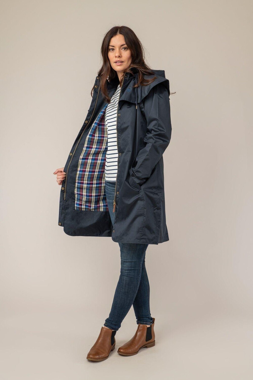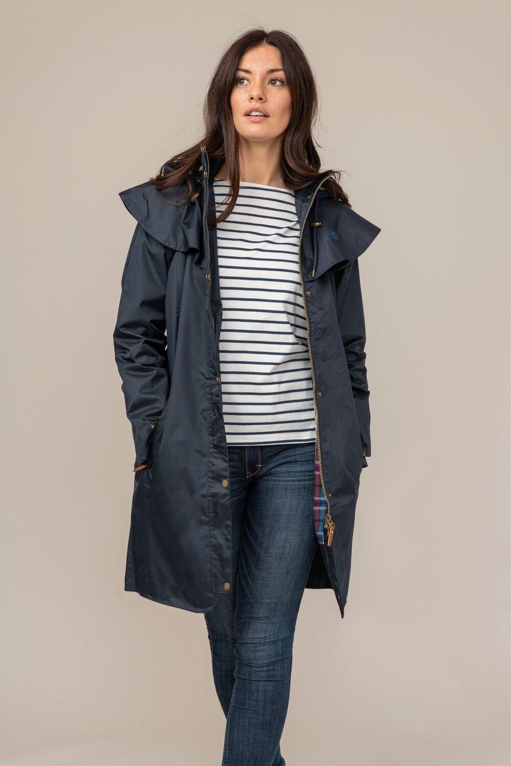 Прочное водонепроницаемое пальто длиной ¾. Длинный плащ Outrider, созданный для неторопливых прогулок на природе и изучения красивой сельской местности, станет идеальным выбором для холодных, ветреных и дождливых дней. Накидка, съемный капюшон и водонепроницаемая ткань, созданная с учетом традиционного стиля кантри, защитят вас, независимо от того, что готовит Мать-Природа. Старинная латунная фурнитура, клетчатая хлопковая подкладка и насыщенные осенние и зимние ягодные оттенки создают современный, модный стиль. Fawn — новое цветовое дополнение к коллекции Heritage в этом сезоне, напоминающее естественные и землистые тона природы. Наши женские водонепроницаемые пальто созданы с особым вниманием к деталям: от шнурков в морском стиле до старинных латунных пуговиц и пуговиц. Все наши принты, созданные в Белфасте, нарисованы вручную, и мы уделяем большое внимание качеству и посадке каждого предмета одежды. Что бы ни бросала вам Мать-Природа, утолите свою страсть к путешествиям, наслаждайтесь простым моментом...