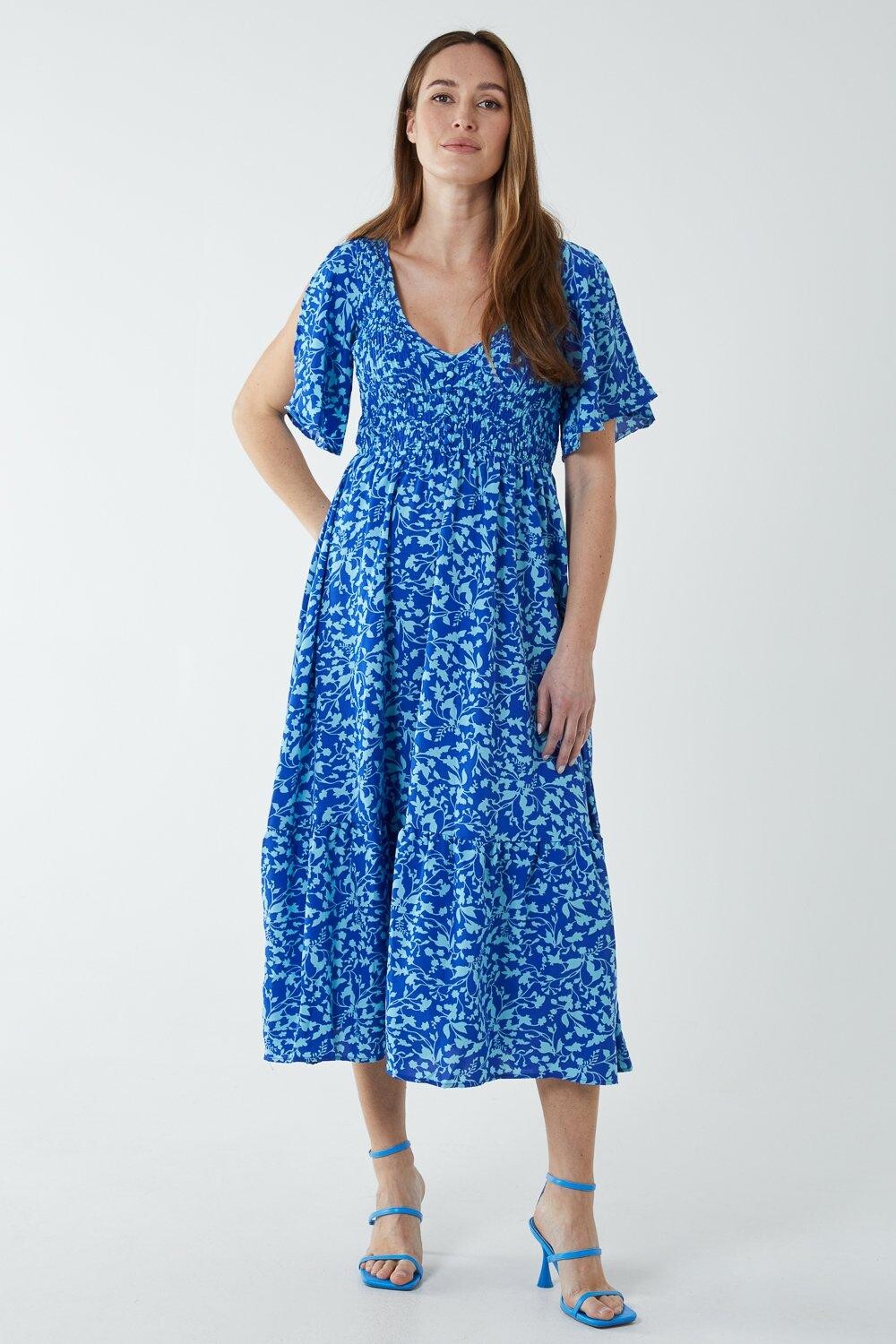 Платье миди со срезанным бюстом и рукавами-ангелами Blue Vanilla, синий