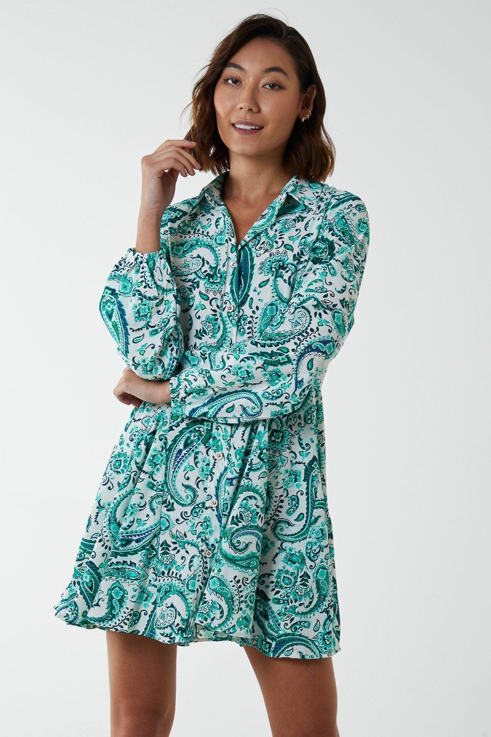Платье на пуговицах с узором пейсли Blue Vanilla, зеленый