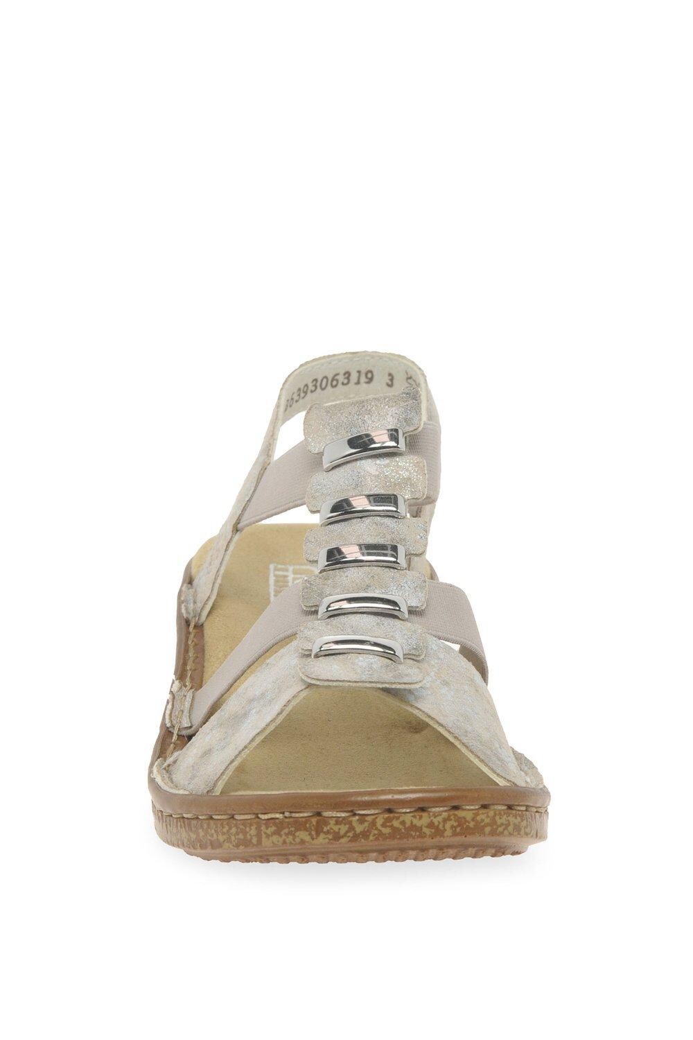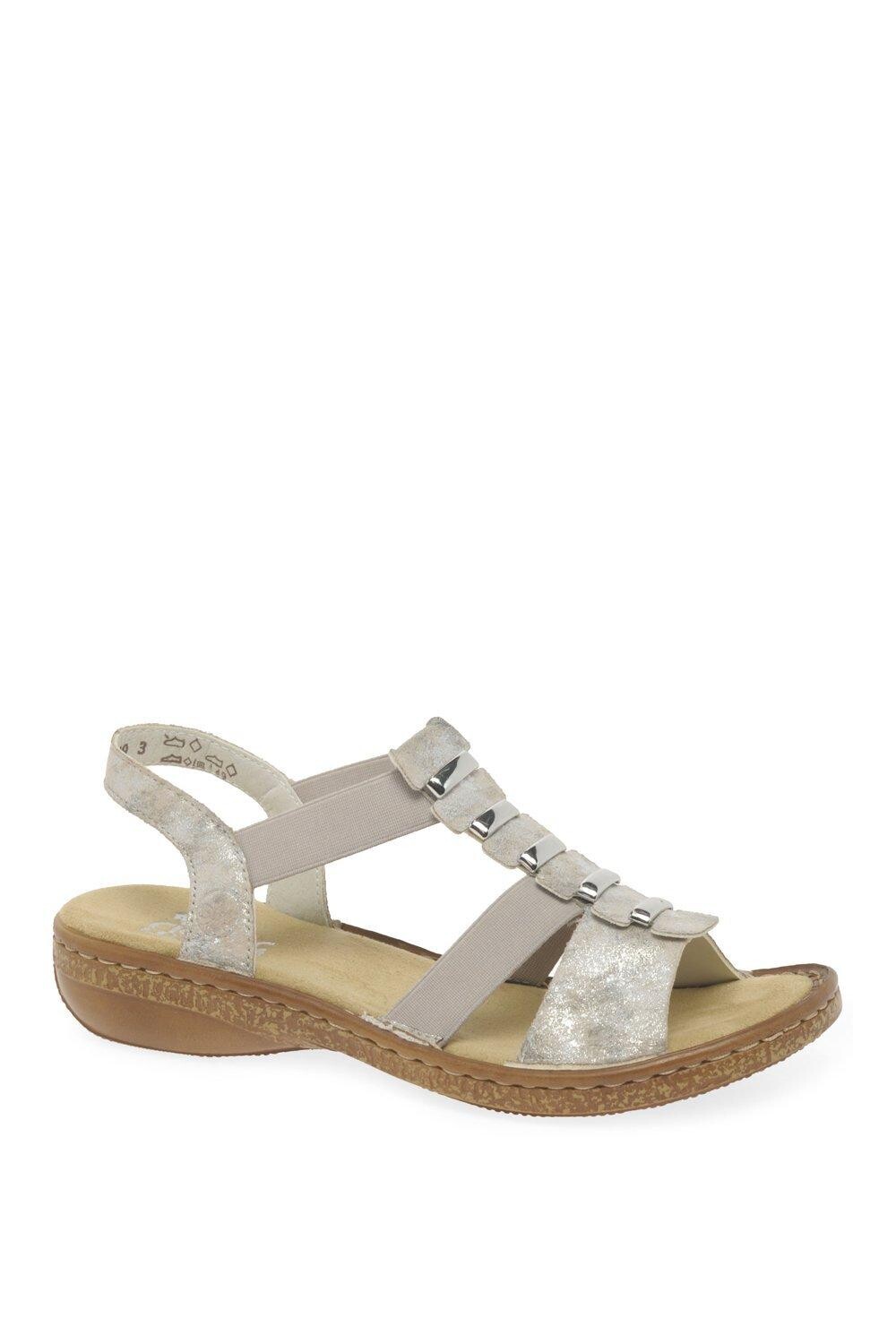 Женские сандалии Rieker's Trim с ремешком на спине изготовлены из прочной белой синтетической кожи и отделаны спереди металлической и белой синтетической отделкой. Эластичные лямки обеспечивают легкое надевание, а удобная подошва обеспечивает высокий уровень практичности.