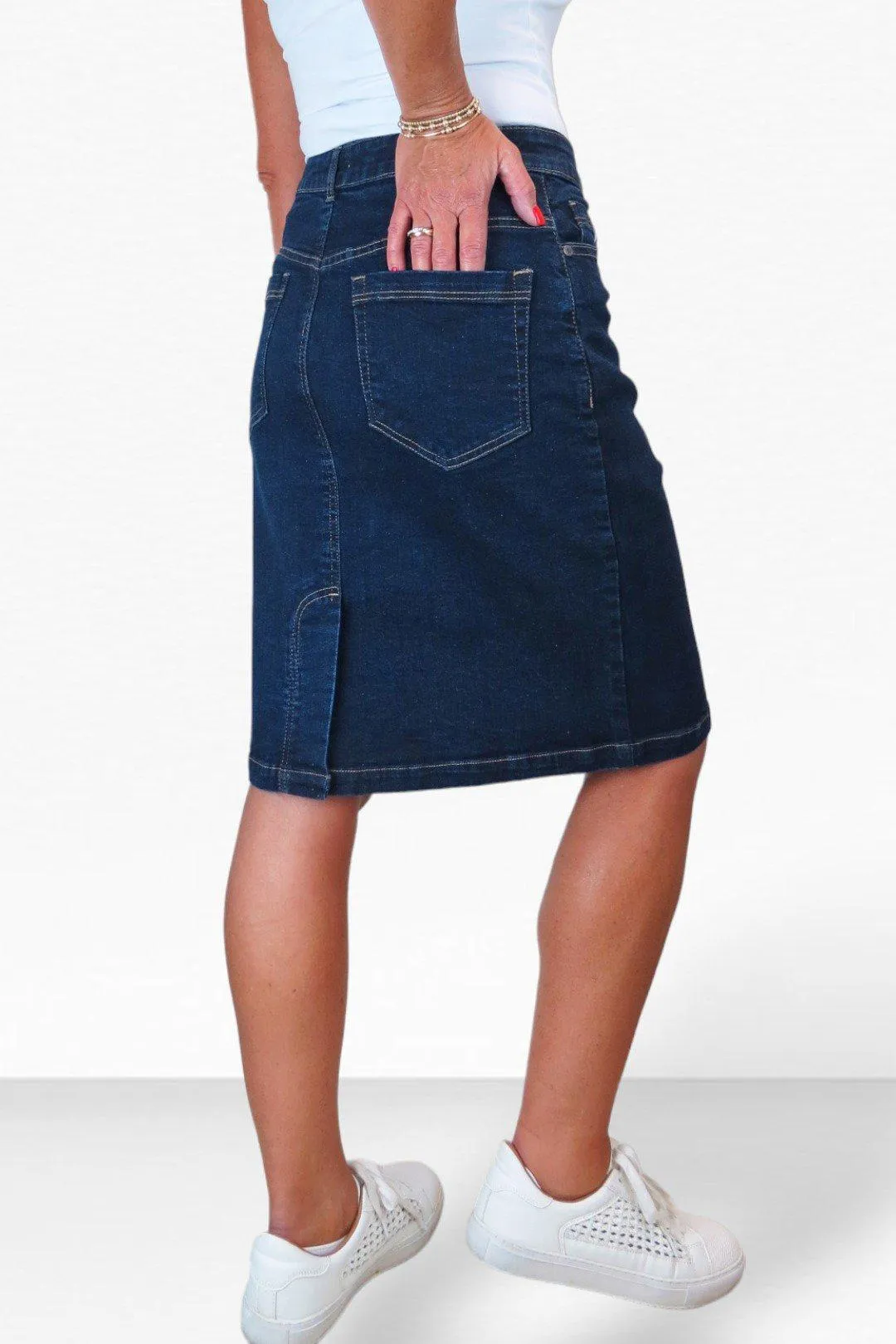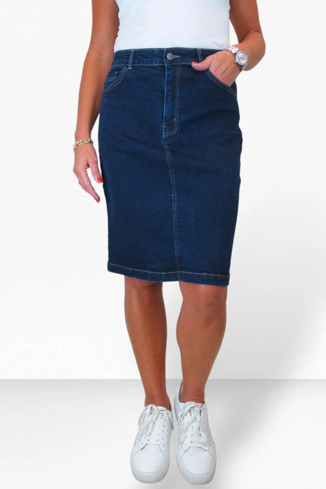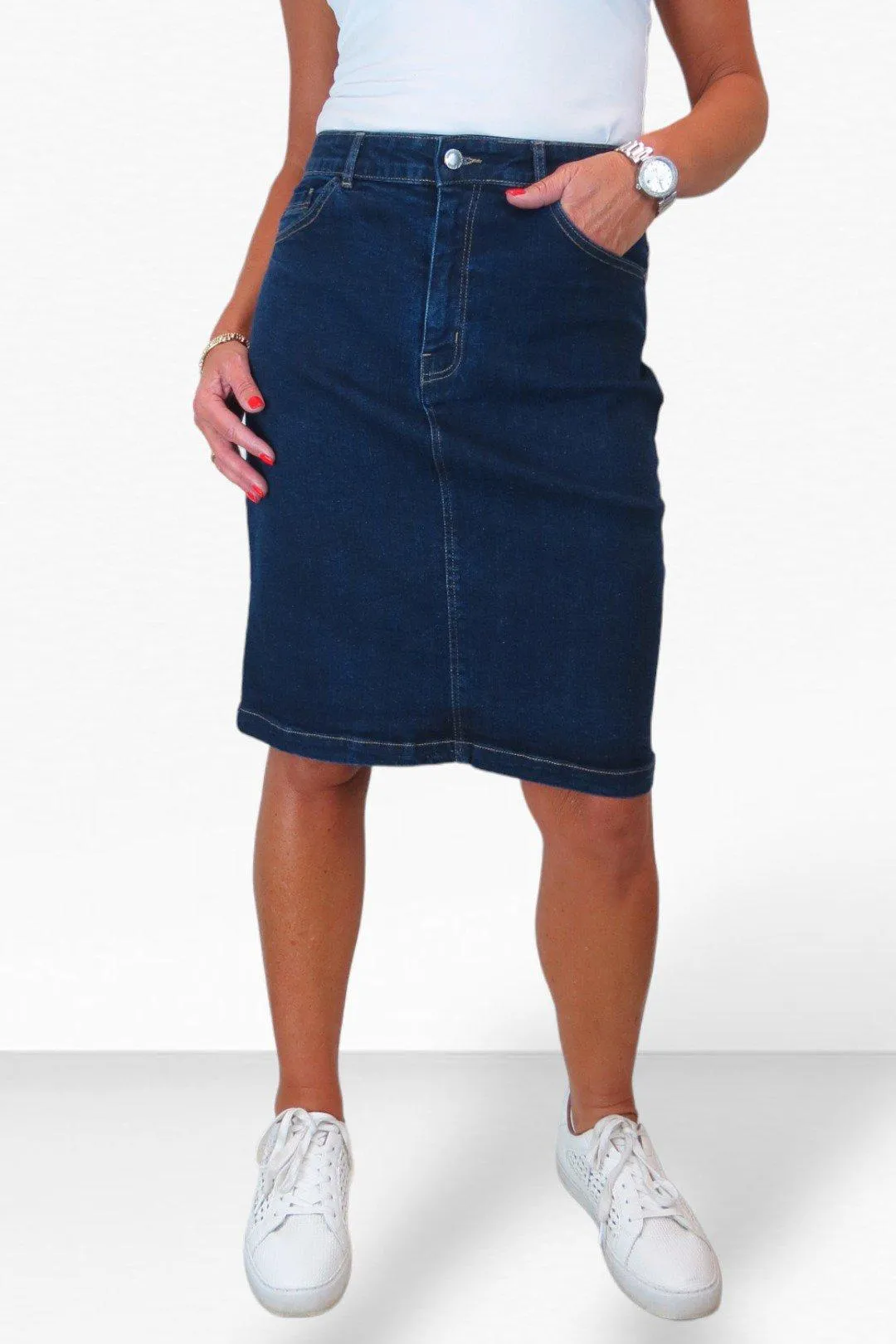 Каждая женщина должна иметь в своем гардеробе классическую джинсовую вещь. Женская классическая джинсовая юбка — идеальный выбор в течение всего сезона. Она изготовлена из эластичной джинсовой ткани, обеспечивающей максимальный комфорт в течение всего дня! Джинсовая юбка из эластичного денима выпускается в различных вариантах стирки и подойдет для любого случая, как днем, так и вечером. Женская юбка-карандаш подходит для любой фигуры и имеет классический джинсовый дизайн с пятью карманами, состоящими из трех передних и двух простых задних карманов. На передней части юбки имеются заклепки цвета бронзы для дополнительной поддержки. Пуговица цвета бронзы и молния позволяют легко застегнуть юбку длиной до колена. На поясе есть петли для ремня, поэтому вы можете добавить ремень, чтобы смешивать и сочетать цвета, создавая различные наряды, затягивая при этом талию. На спине имеется прорезь, позволяющая легко двигаться и удобно сидеть. Эта женская юбка длиной до колена с длиной спереди 21 дюйм (54 см). В теплый день сочетайте ее с футболкой...