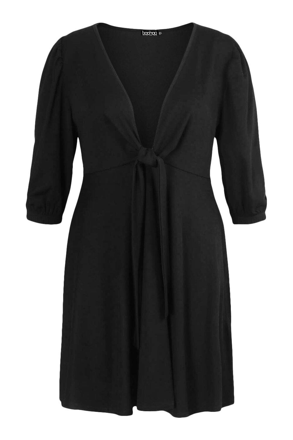 Платье с плиссированной юбкой и узлом спереди boohoo, черный