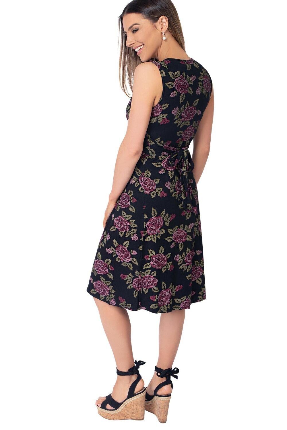 Платье с принтом роз и узлом спереди KRISP, черный