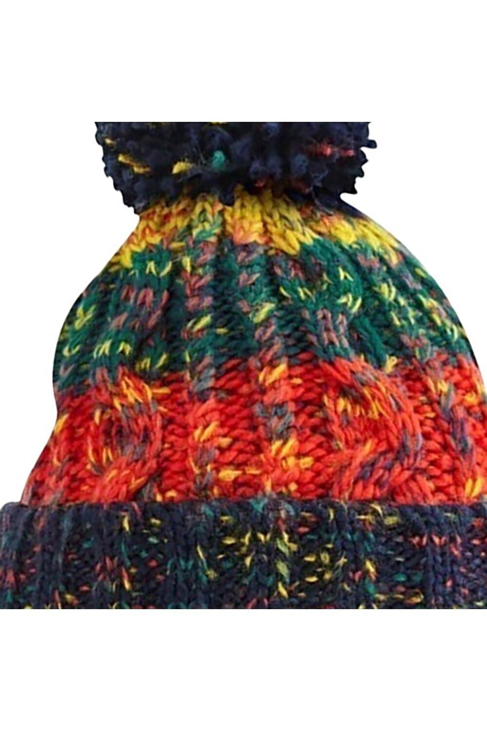 Зимняя шапка унисекс с помпоном. Яркий дизайн с четырьмя цветными полосками. Роскошный терморемешок из овчины для дополнительного тепла. Тяжелый дизайн, связанный косами из нескольких нитей. Стирать вручную. Ткань: 100% акрил мягкого прядения.