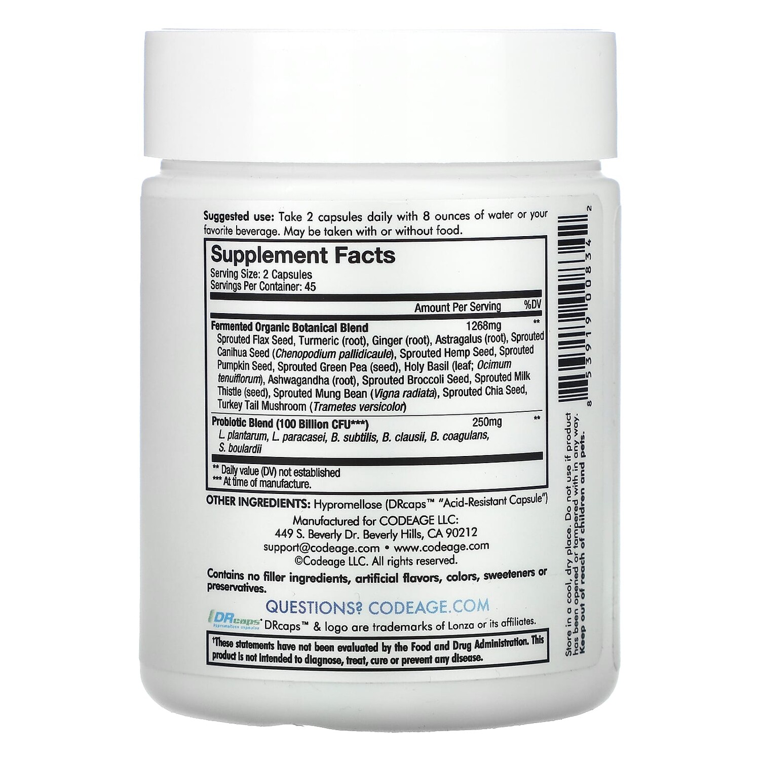 Пробиотик SBO + Codeage для пищеварения, 90 капсул