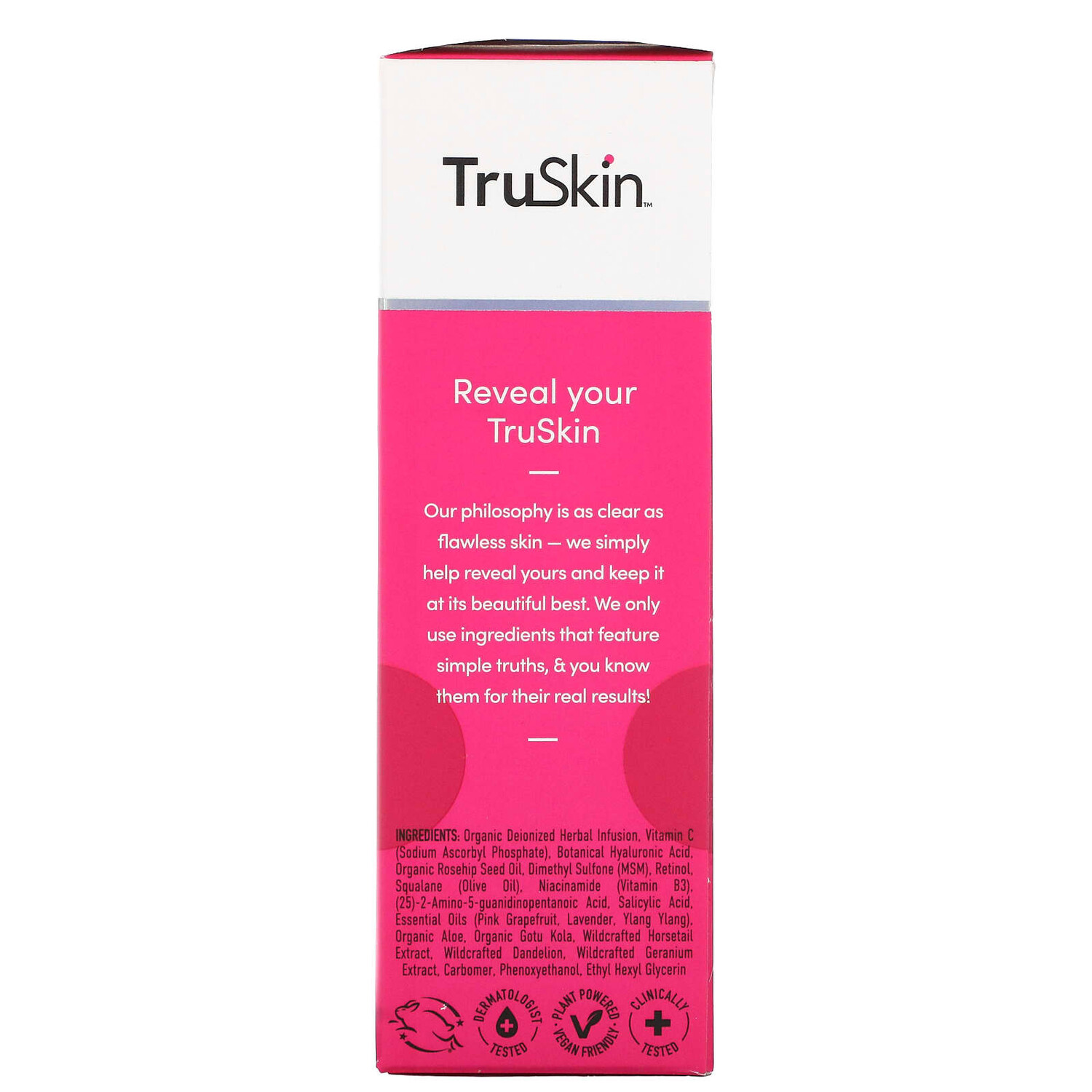 Состав: органический деионизированный травяной настой, органический алоэ вера, витамин C (аскорбил фосфат натрия), МСМ (метилсульфонилметан), растительная гиалуроновая кислота, никотинамид (витамин B3), ретинол, сквален из оливкового масла, салициловая кислота, органическое масло семян шиповника, карбомер, (2s) -2-амино-5-гуанидинопентановая кислота, эфирное масло чайного дерева, лавандовое эфирное масло, эфирное масло иланг-иланга, дикорастущий одуванчик, органическая готу кола, дикорастущая герань, дикорастущий хвощ, феноксиэтанол, этилгексилглицерин. Инструкция по применению: хорошо встряхивайте перед каждым использованием. Очистите лицо и промокните кожу насухо. Если вы используете тонер, сначала нанесите тонер. Нанесите 2–3 капли сыворотки на кончики пальцев, ладонь или тыльную сторону ладони. Нанесите сыворотку на лицо, избегая попадания в глаза. Дайте сыворотке высохнуть. Затем нанесите свой любимый увлажняющий крем TruSkin. Можно наносить на лицо, шею, зону декольте и тыльную сторону рук 2–3 раза в неделю. всегда наносите солнцезащитный крем в течение дня при использовании любого продукта с ретинолом. Полезный совет от TruSkinОбязательно проведите кожную аллергическую пробу, нанеся сыворотку на небольшой участок руки, лица или шеи по крайней мере за 24–48 часов до нанесения сыворотки на все лицо, чтобы убедиться что ингредиенты подходят для вашей кожи.
