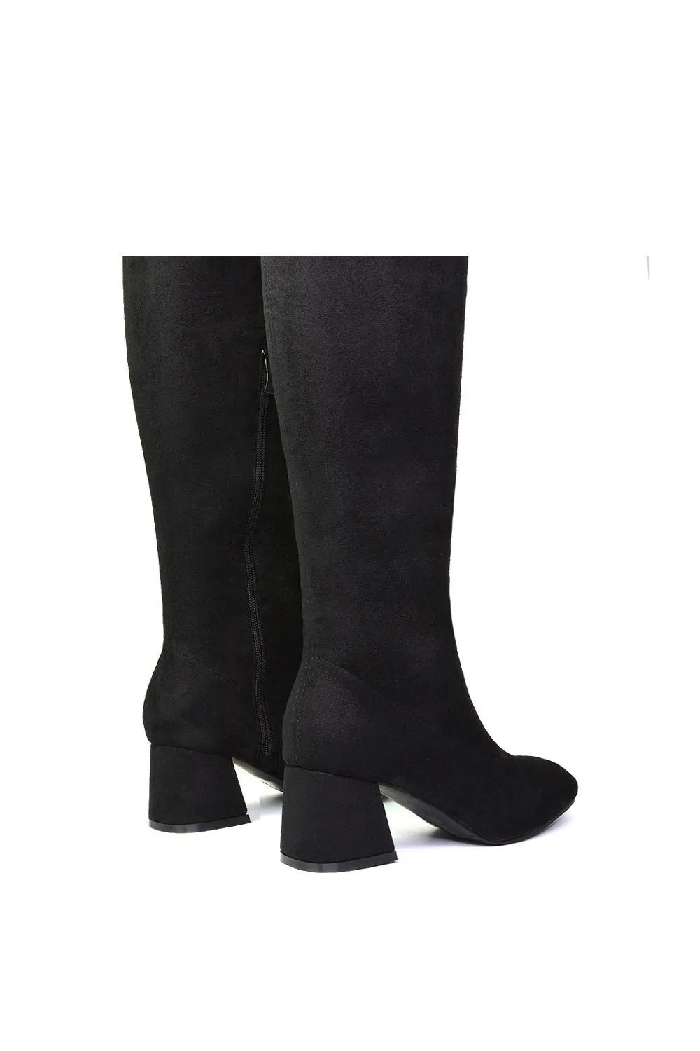 Приготовьтесь к зимней стране чудес в наших новых сапогах выше колена, созданных для холодной погоды. Средний каблук, расклешенный каблук и внутренняя молния для застегивания.