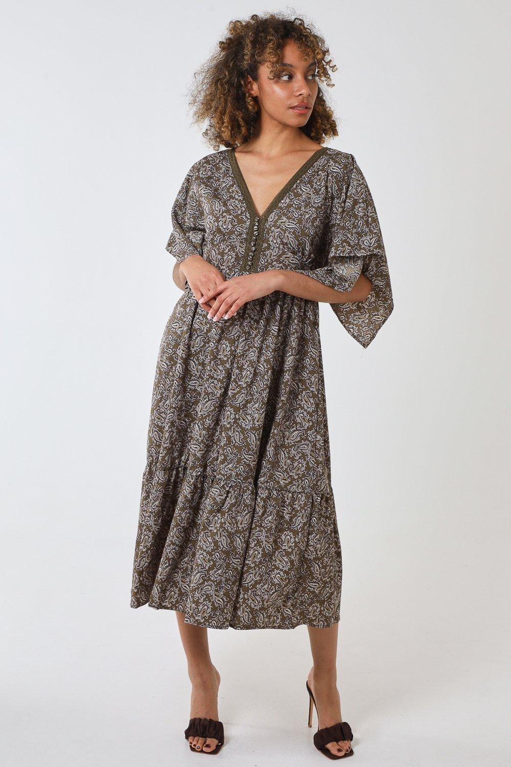 Платье-кимоно с рукавами и бюстом крючком Blue Vanilla, хаки