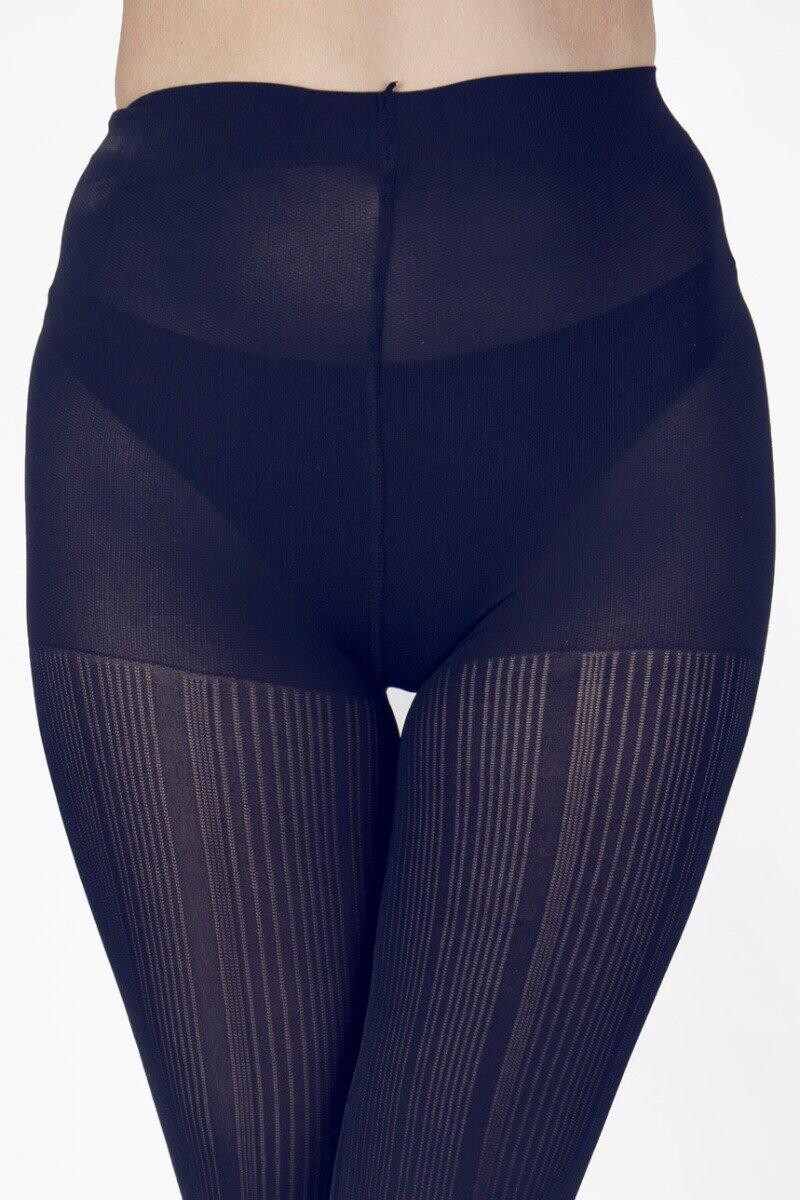 Непрозрачные колготки в рубчик — темно-синие. Категория продукта: Чулочно-носочные изделия. Ткань: 83 % нейлон, 16 % эластан, 1 % хлопок. Без пояса, Размер: