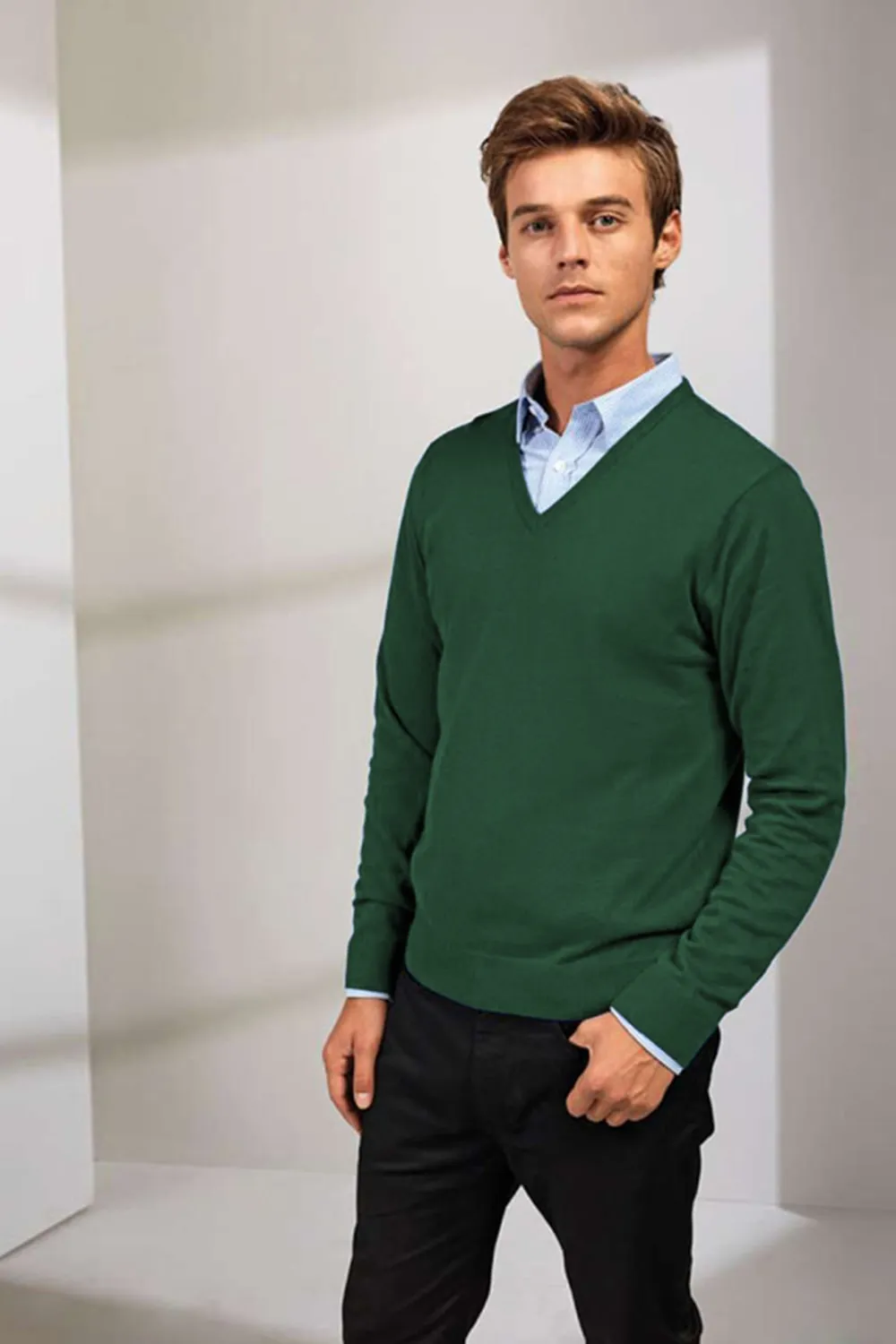 Мужской свитер с V-образным вырезом и длинными рукавами. Мягкая на ощупь пряжа с высоким содержанием хлопка. Идеально подходит для ношения с галстуком или без него. Тонкая вязка. Современный стиль. В комплекте с рукавами. 40°C Бытовая стирка. . Размер груди: XXS — 33 дюйма, XS — 35 дюймов, S — 37», M — 39», L — 41», XL — 43», 2XL — 45», 3XL — 47», 4XL — 49 дюймов. Ткань: 55 % хлопок, 45 % акрил. Вес: трикотаж 12 калибра.