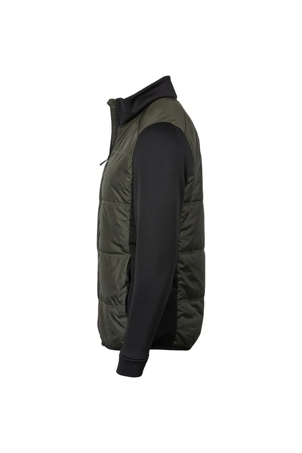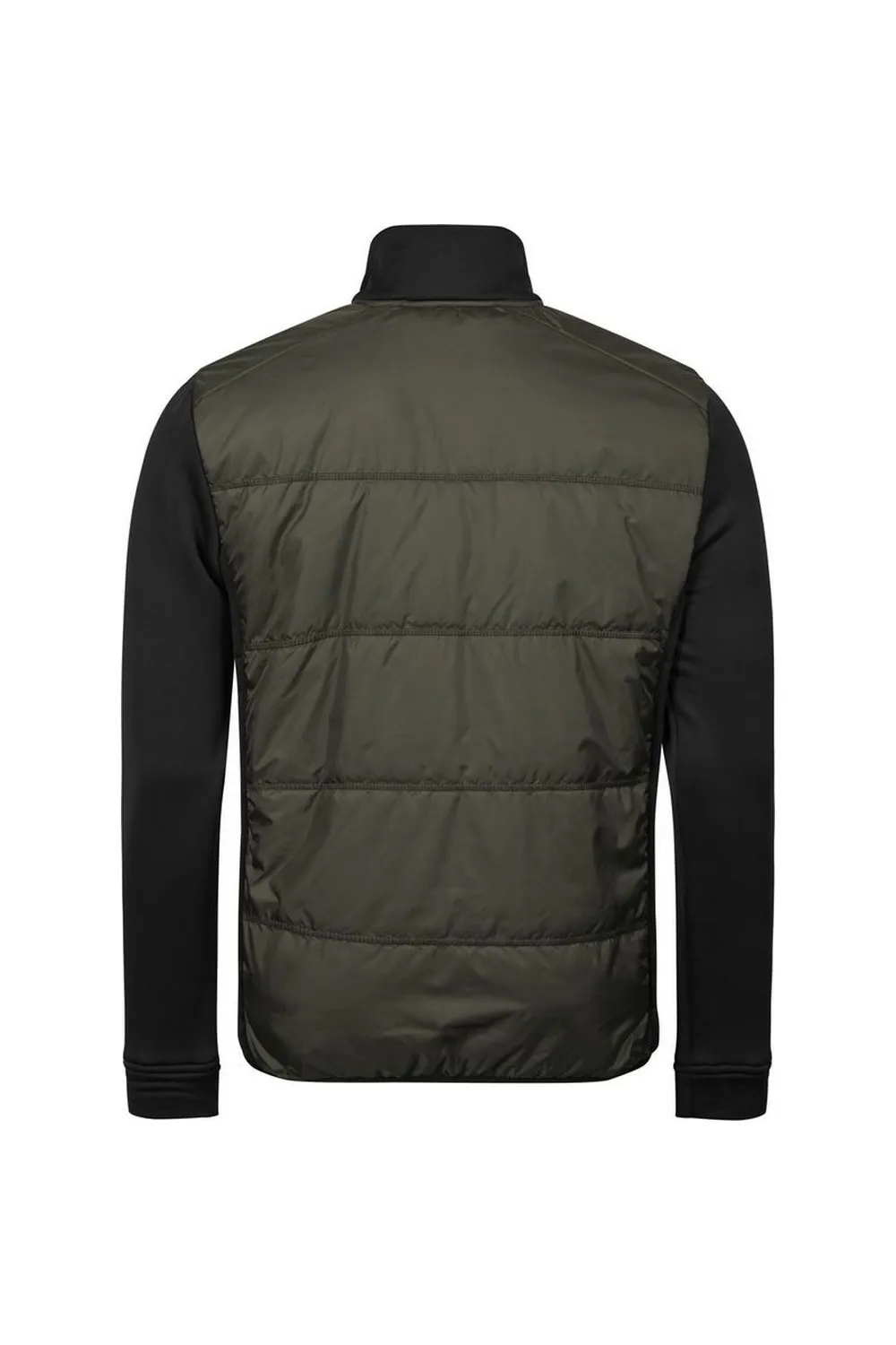 Наружная часть: Эластан, Полиэстер. Материал наполнителя: 100% полиэстер. Материал подкладки: 100% полиэстер. Подкладка: тафта 380T. Наполнение: 235 г/м². Дизайн: однотонный, стеганый. Посадка: индивидуальная. Эластичная панель. Манжета: эластичная. Тип рукава: с длинными рукавами. Вырез: воротник-стойка. Карманы: 2 передних кармана на молнии, 1 внутренний карман. Застежка: СБС-молния. Подол: эластичный. Устойчивое развитие: Дюпон.