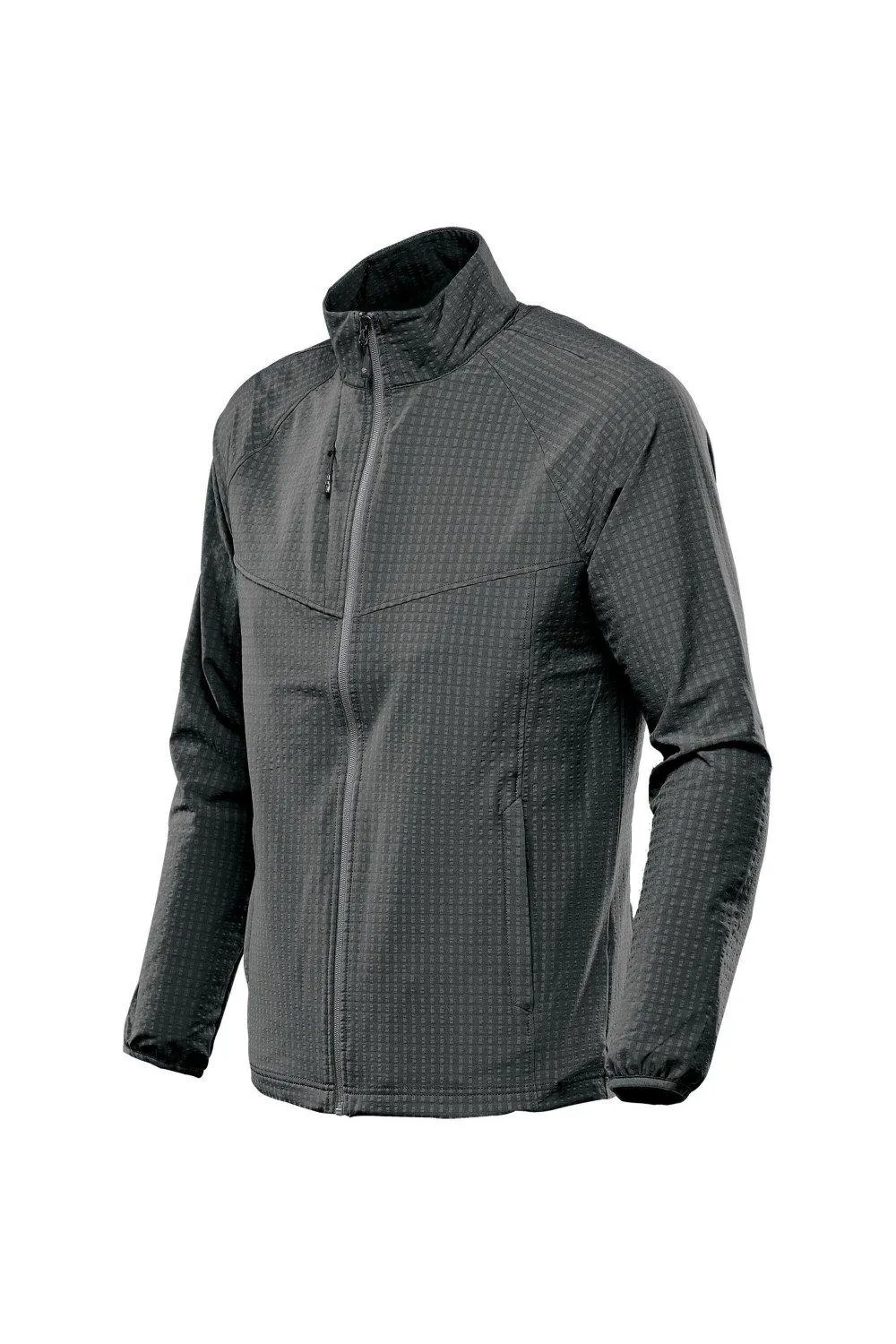 Материал: 92% полиэстер, 8% спандекс. 185 г/м2. Дизайн: Вафля. Шарнирный рукав, аудиопорт, дышащий, внутренний штормовой клапан, не содержит PFC, водоотталкивающий. Технология ткани: Стрейч. Манжета: эластичная. Тип рукава: с длинными рукавами. Вырез: молния. Карманы: потайные, 1 нагрудный, 2 нижних, с прорезями. Застежка: контрастная молния.