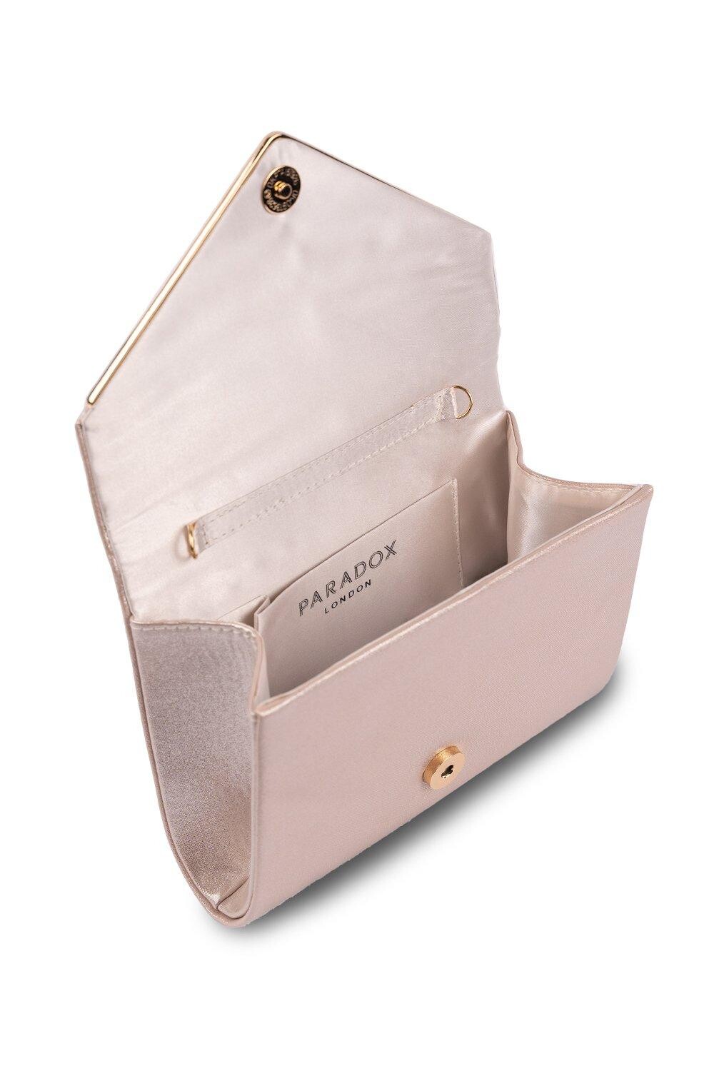 Наша сумка-клатч Darcy от Paradox London имеет V-образный вырез с металлической отделкой. В ней достаточно места для всех необходимых вещей, а также есть съемный ремешок-цепочка и магнитная застежка.
