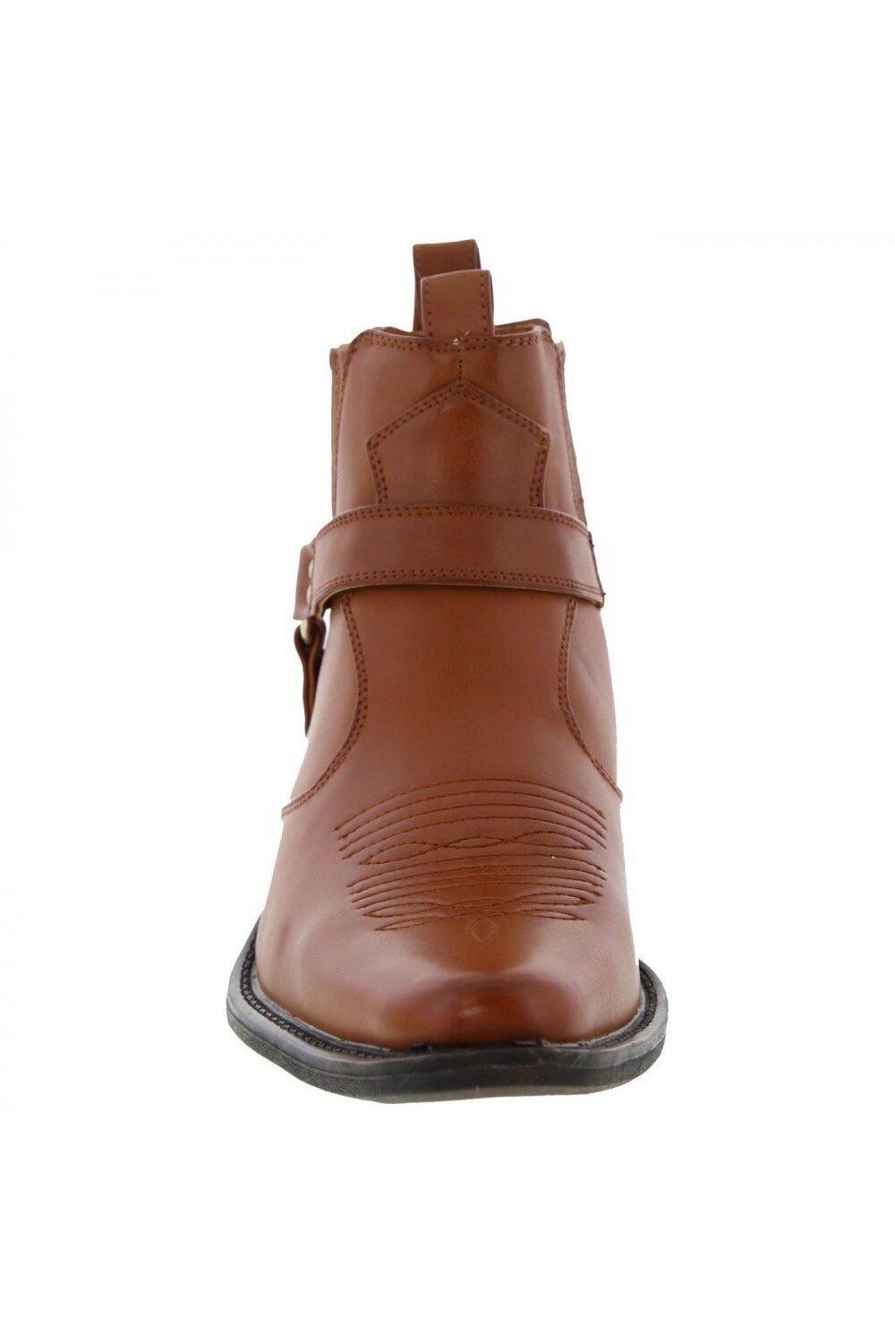 Мужские ковбойские сапоги в западном стиле без шнуровки на кубинском каблуке. Двойная петля для пальцев для легкого надевания. Ремень на щиколотке и ластовица. Верх: Полиуретан. Подкладка: Другое/текстиль. Подошва: ПВХ.