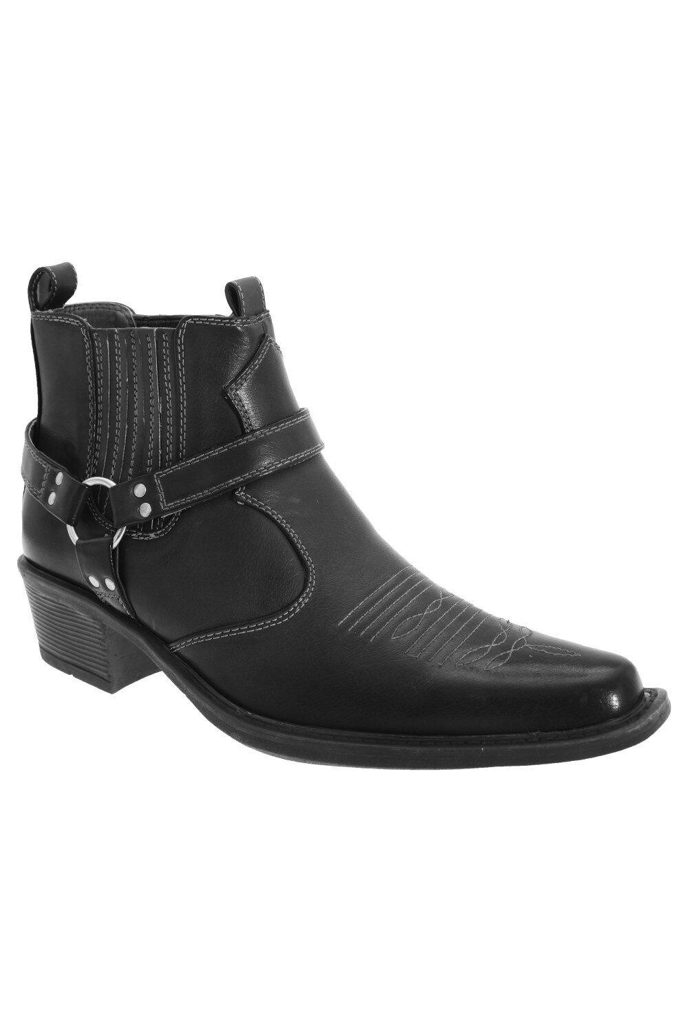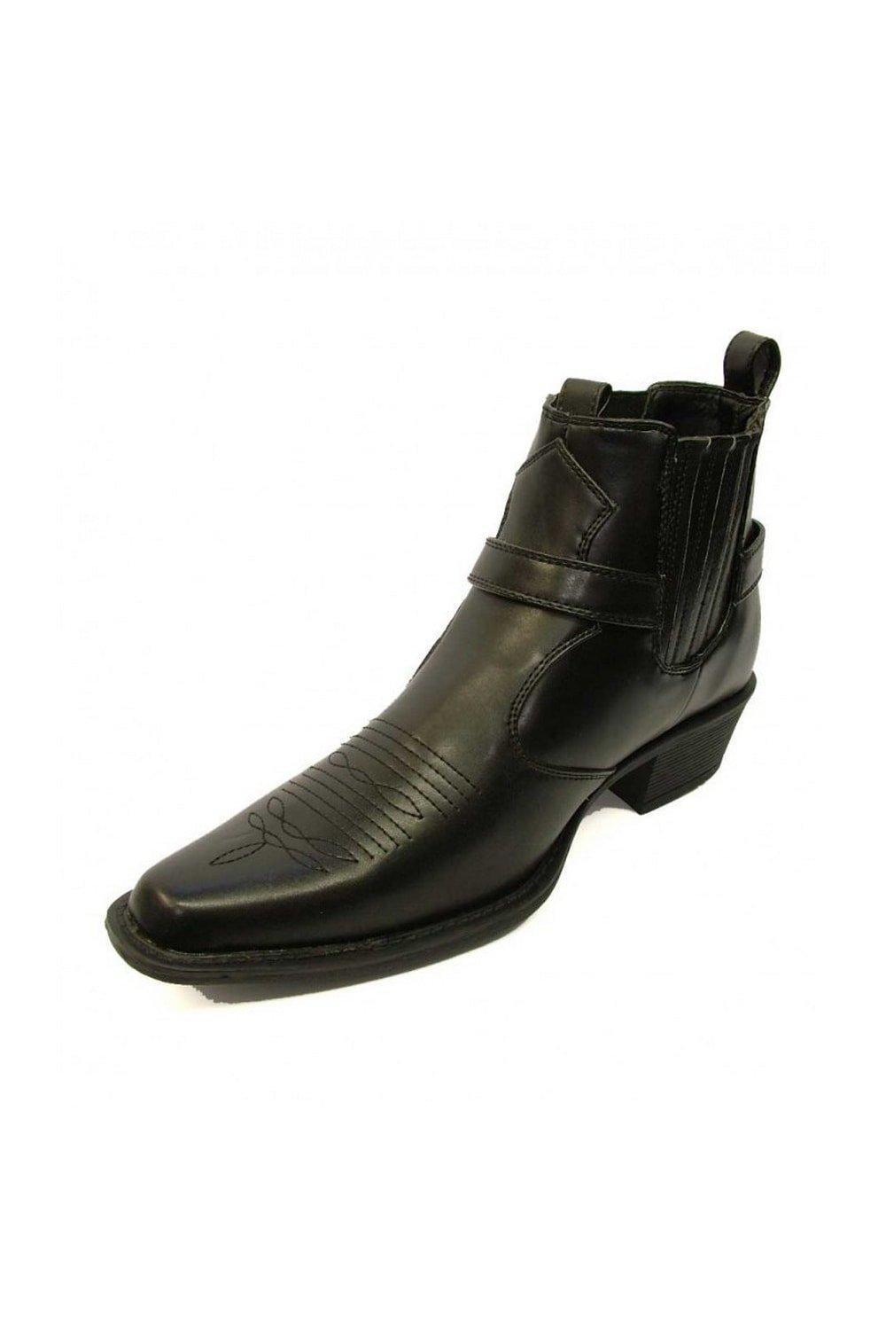 Мужские ковбойские сапоги в западном стиле без шнуровки на кубинском каблуке. Двойная петля для пальцев для легкого надевания. Ремень на щиколотке и ластовица. Верх: Полиуретан. Подкладка: Другое/текстиль. Подошва: ПВХ.