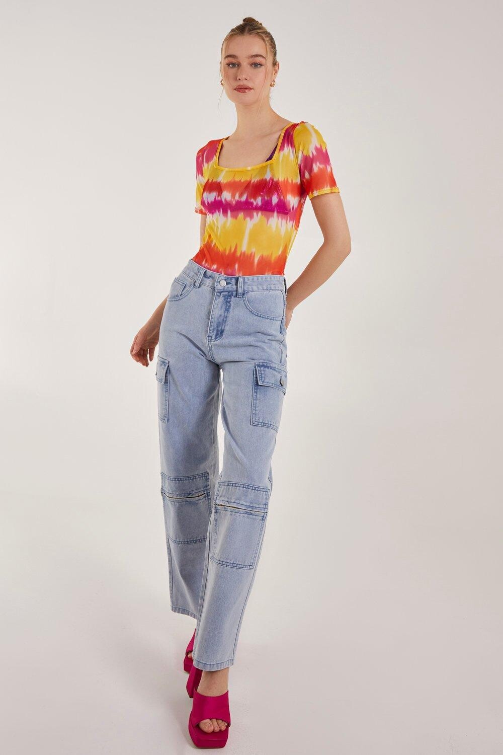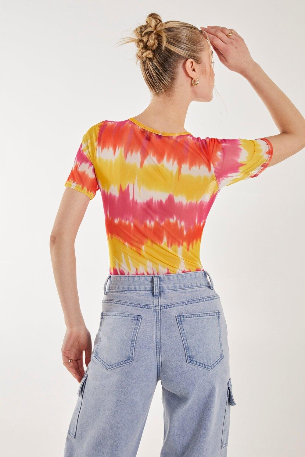 Шоппинг в фестивальный сезон? Приобретите это супер-крутое боди с квадратным вырезом в сетку Tie Dye.