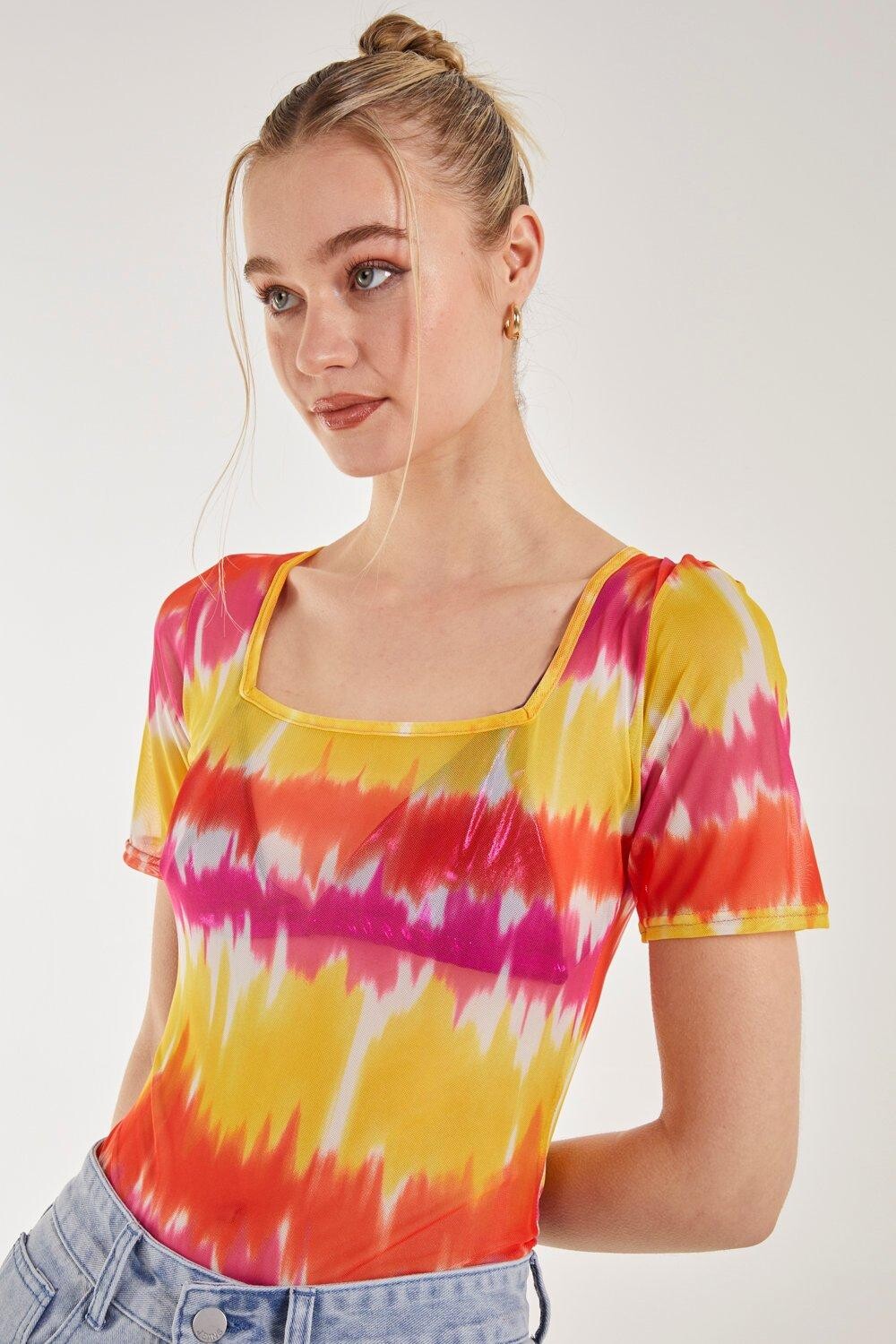 Сетчатое боди с квадратным вырезом Tie Dye Pink Vanilla, мультиколор