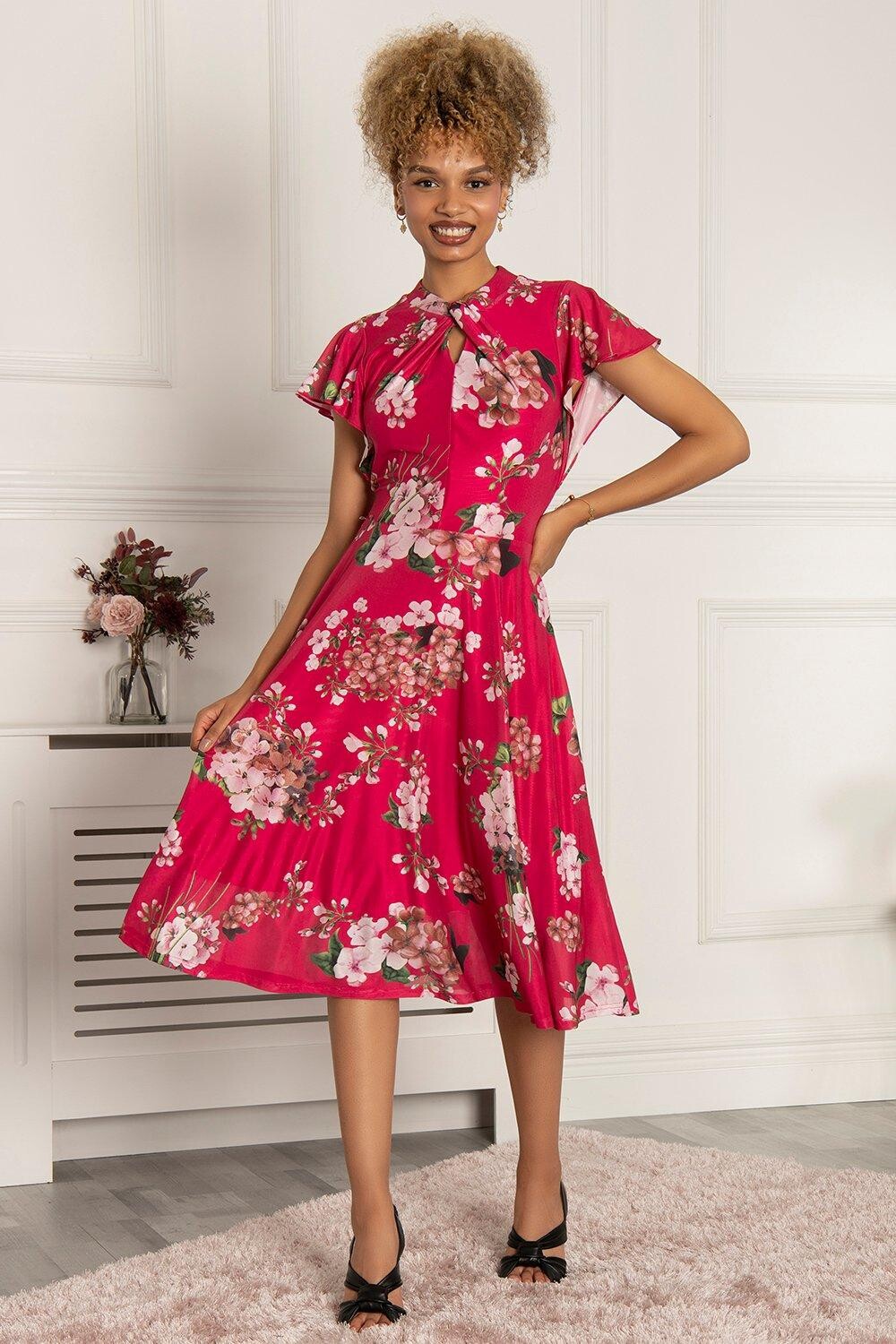 Это платье миди от Jolie Moi с расширяющимся подолом, создающим женственный силуэт, украшено красивым цветочным принтом, придающим дополнительный шарм. Запах спереди и короткие рукава позволяют носить его с сандалиями, чтобы провести целый день на солнце.