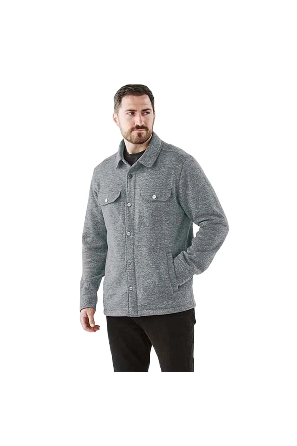 Материал: 75 % переработанный полиэстер, 25 % полиэстер. Ткань: Флис, Хизер, Трикотаж. Дизайн: Обычный. 320 г/м2. Технология ткани: прочная, износостойкая. Манжеты: регулируемые, на трикотажной подкладке с начесом, на пуговицах. Планка на подкладке из матового трикотажа. Вырез: воротник, тканая подкладка. Тип рукава: с длинными рукавами. Карманы: на подкладке из матового трикотажа, 2 нагрудных кармана, застежка на кнопки, 2 передних кармана. Застежка: на пуговицах. Подол: начесованная трикотажная подкладка. Экологичность: сертификат Oeko-Tex Standard 100, сертификат Pure Earth, сертификат WRAP.