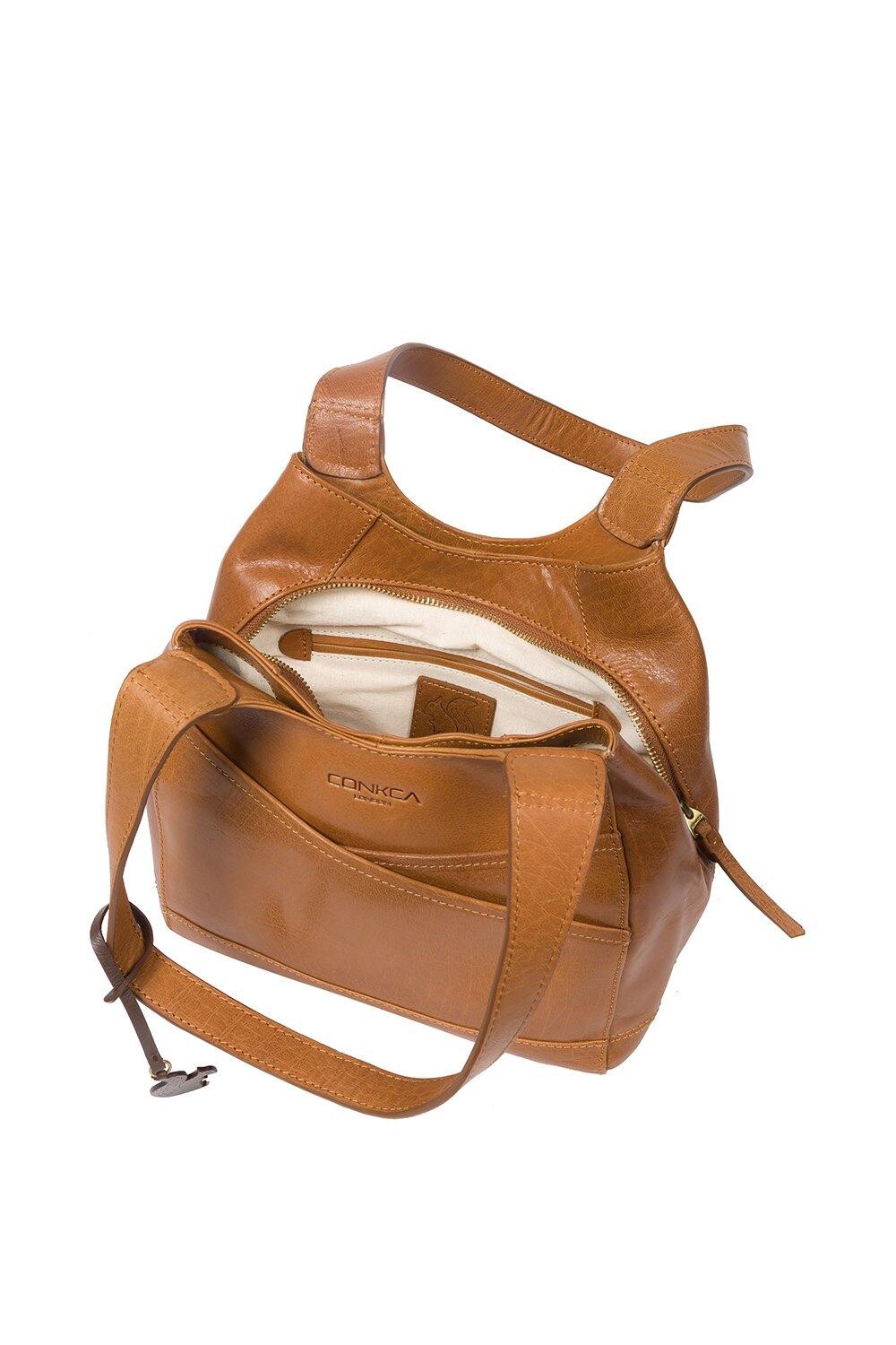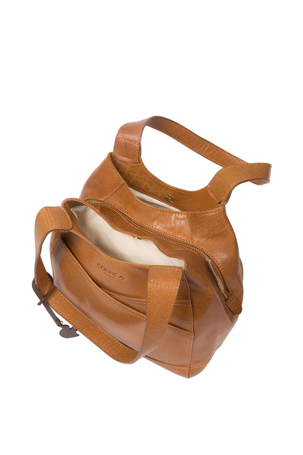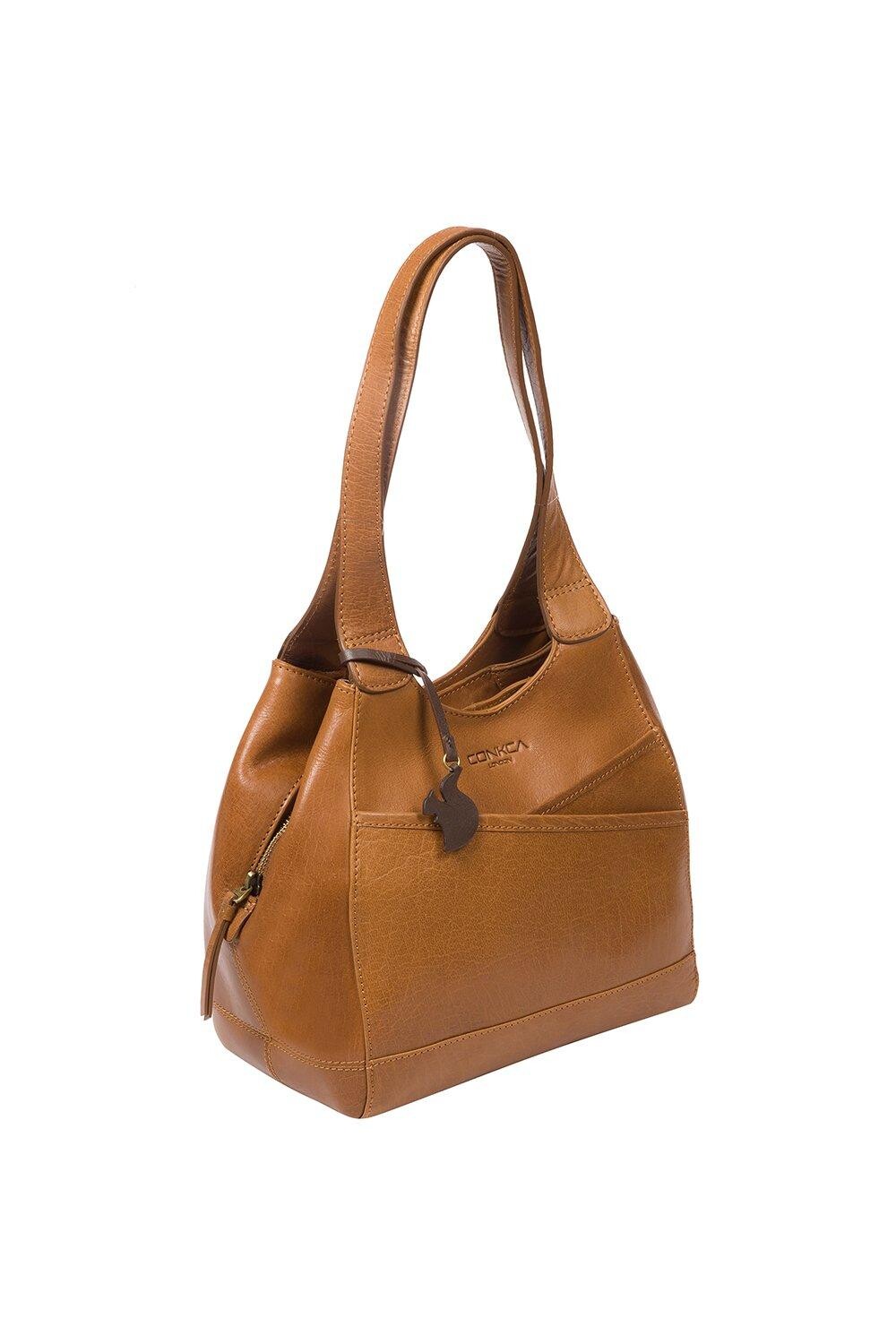 Сумка Juliet от Conkca London изготовлена вручную из цельнозерновой кожи буйвола, что придает ей красивый вид. Привлекательные накладные мешочки обеспечивают достаточно места для хранения вещей, которые можно взять с собой в дорогу. Два кармана на магнитных застежках расположены по бокам просторного центрального отделения и имеют два внутренних кармана, идеально подходящих для смартфона и ключей. Подкладка из натурального и необработанного 100% хлопка. Украшено неповторимым шармом в виде белки Конкка.