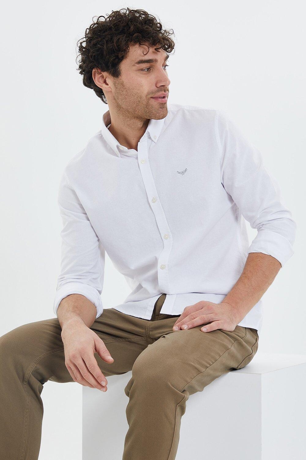 Оксфордская хлопковая рубашка «Маяк» с длинным рукавом Threadbare, белый