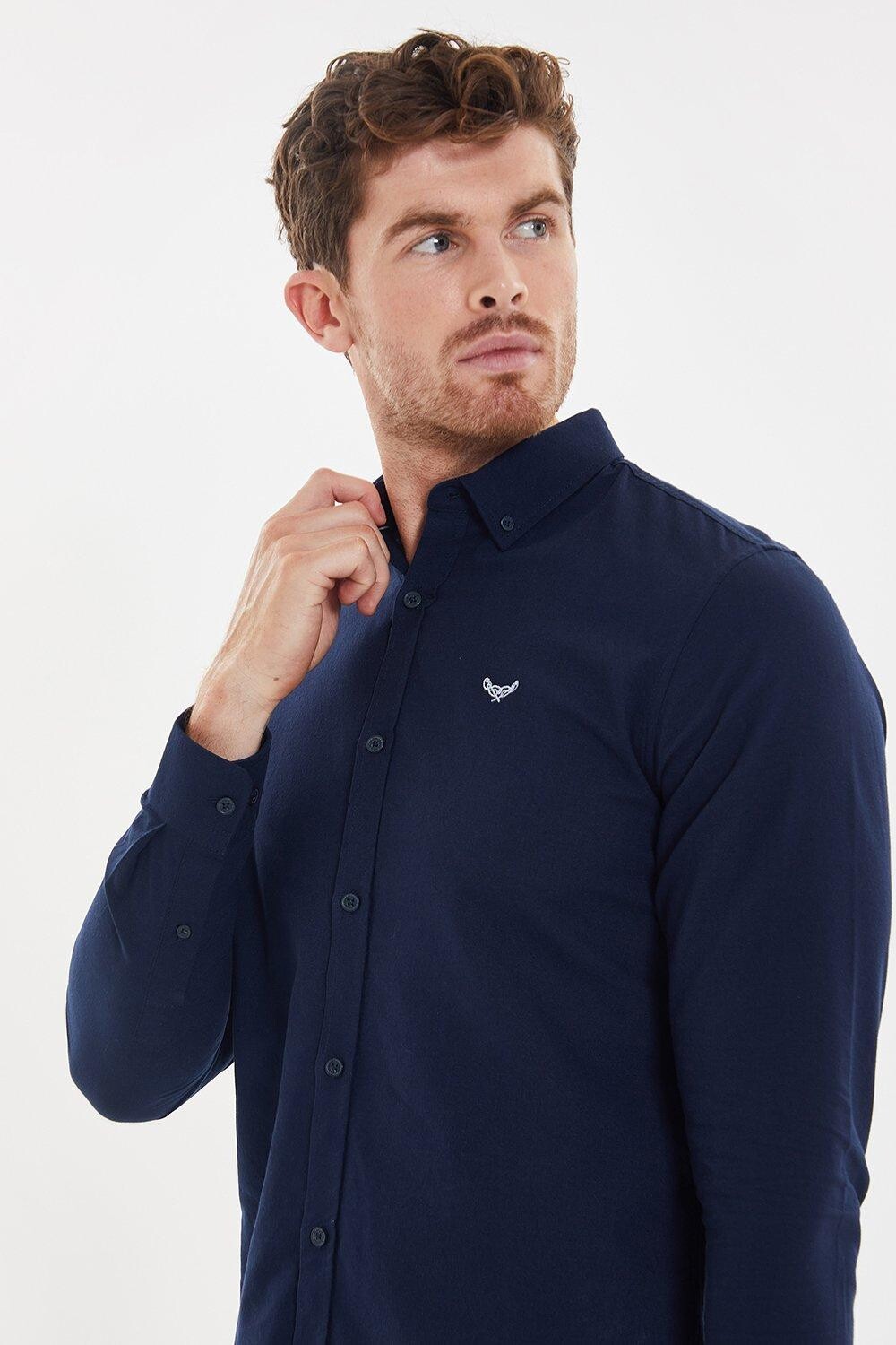 Оксфордская хлопковая рубашка «Маяк» с длинным рукавом Threadbare, темно-синий